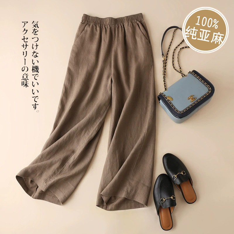Тонкие штаны, из хлопка и льна, высокая талия, свободный прямой крой