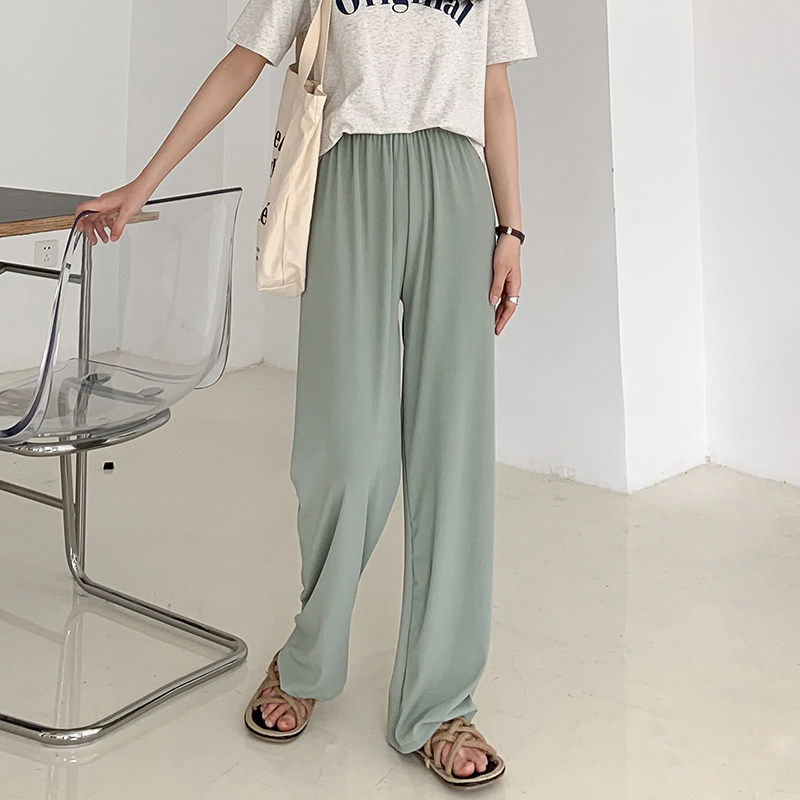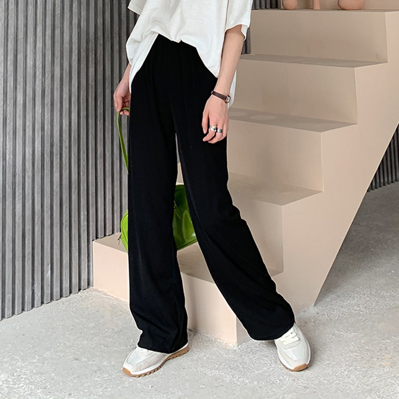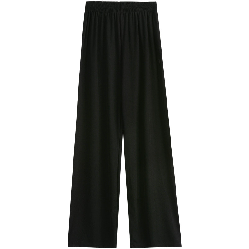 Летние шелковые тонкие повседневные брюки для отдыха, черные штаны, сезон 2021, высокая талия, свободный прямой крой