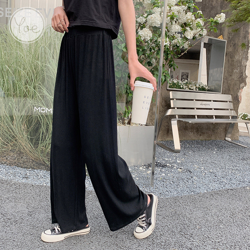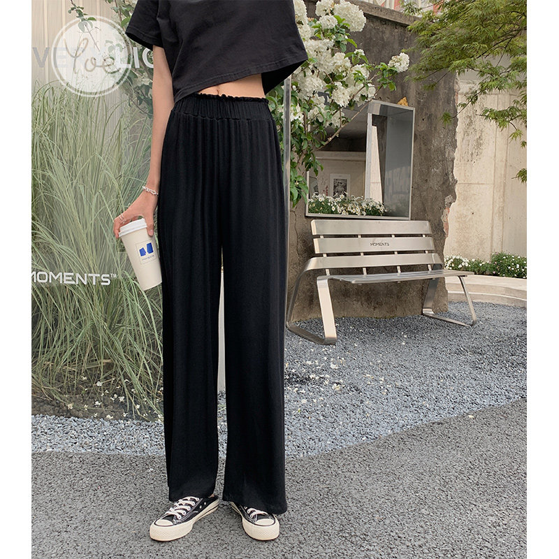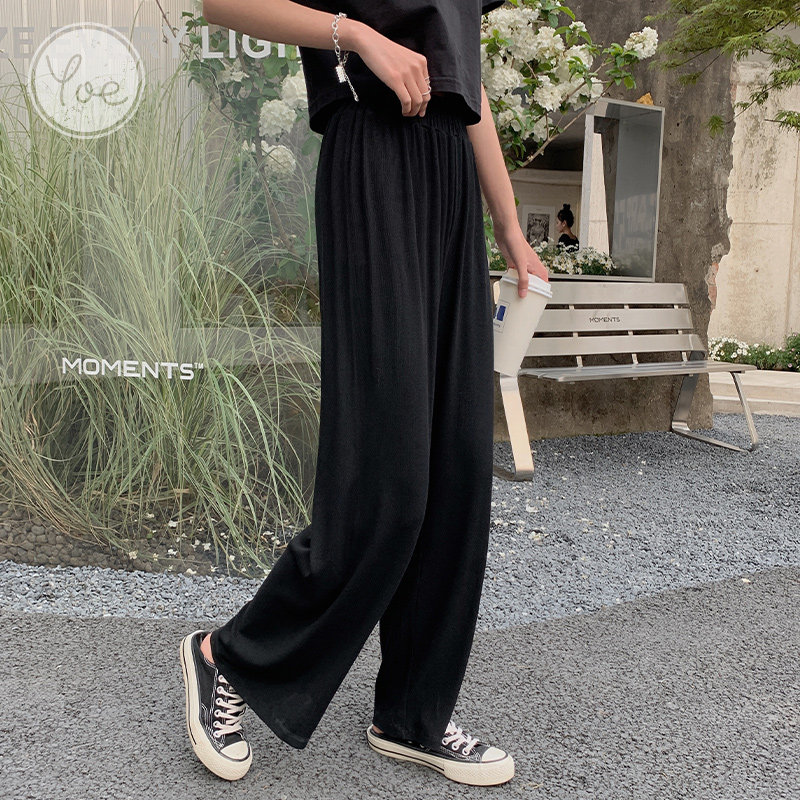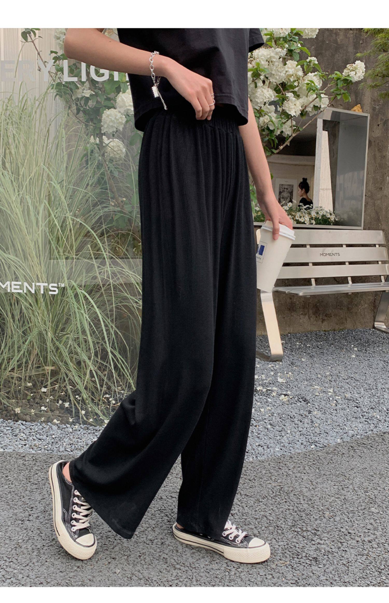 Tide, летние тонкие черные штаны для отдыха, высокая талия, свободный прямой крой