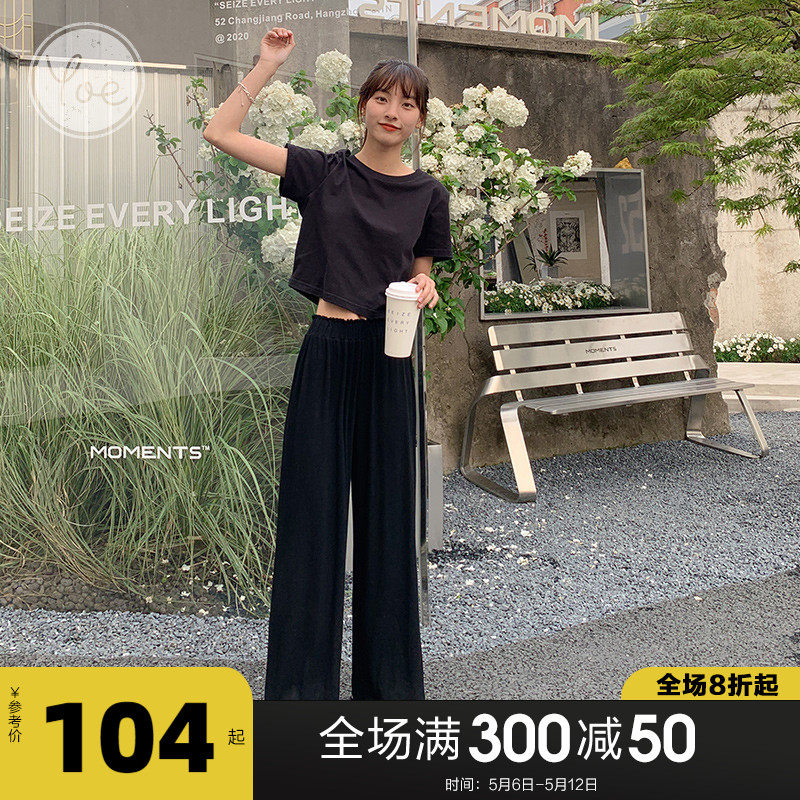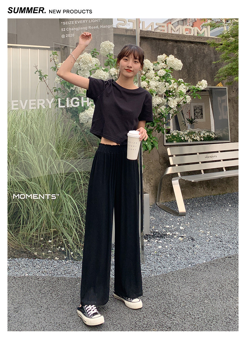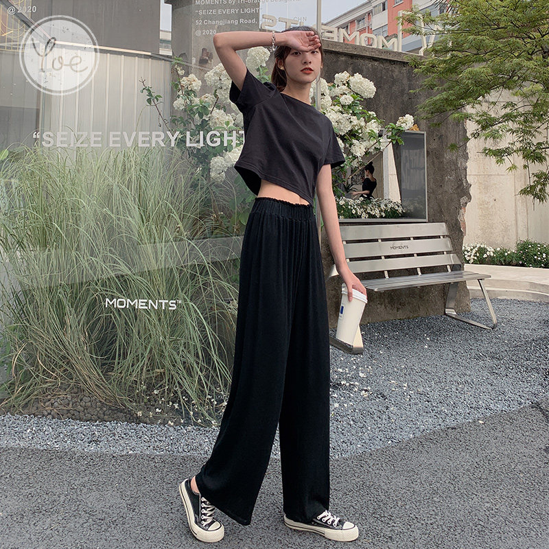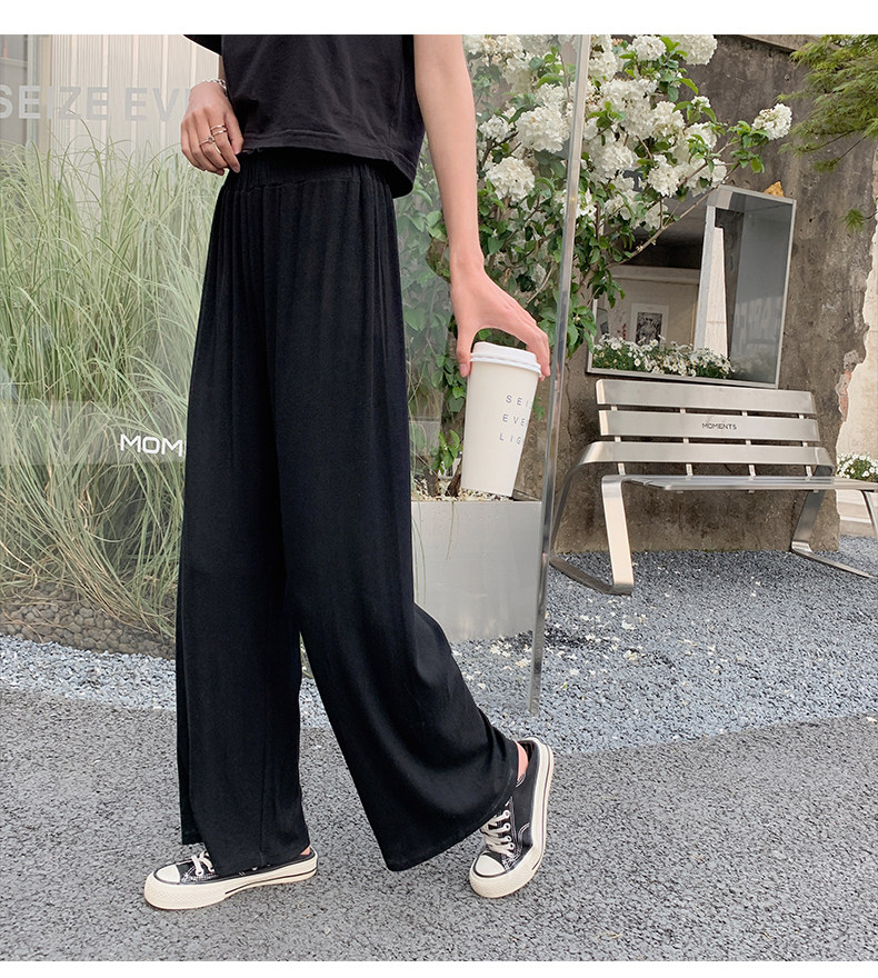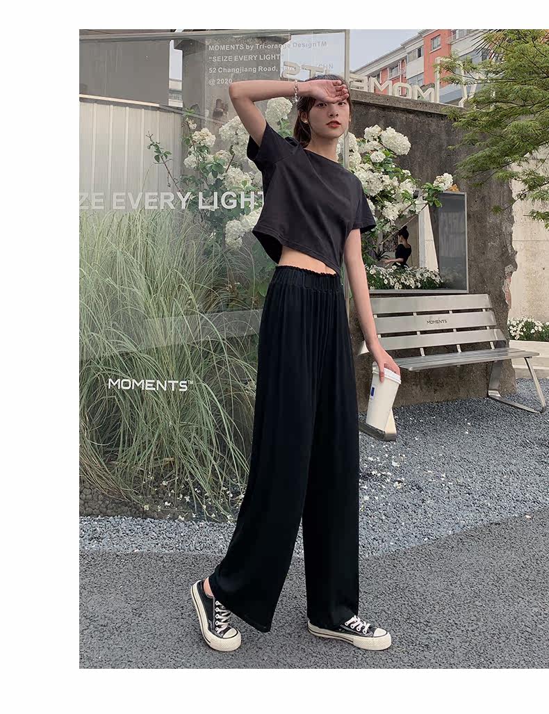 Tide, летние тонкие черные штаны для отдыха, высокая талия, свободный прямой крой