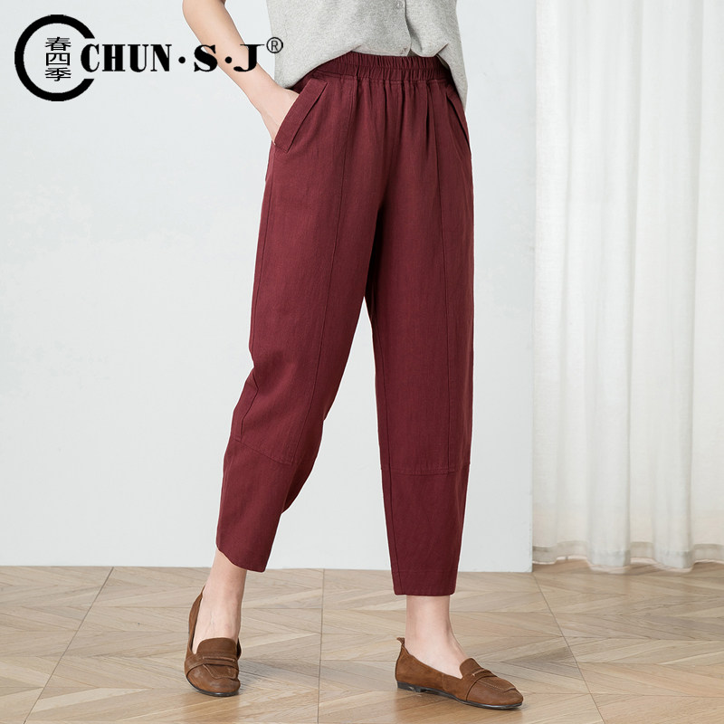 Тонкие штаны, фонарь, большой размер, из хлопка и льна, свободный крой