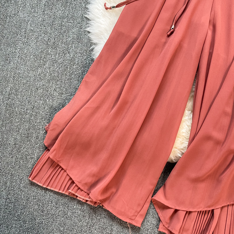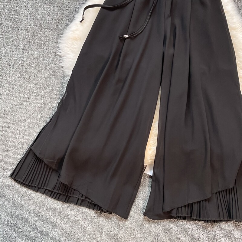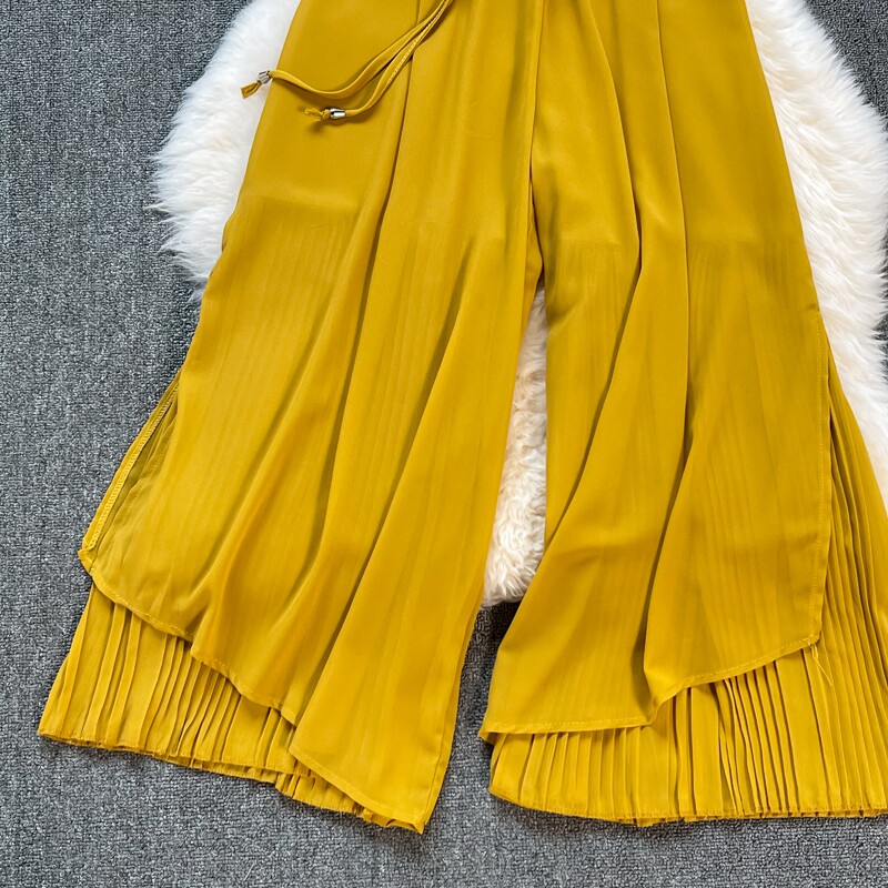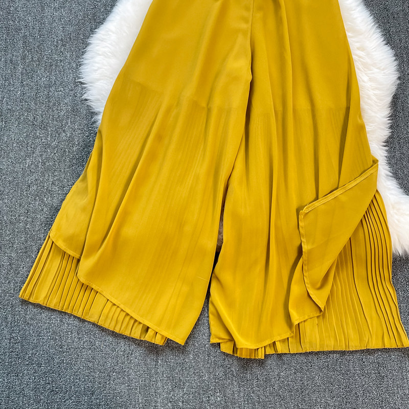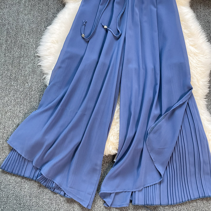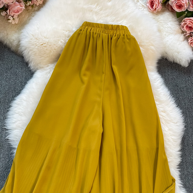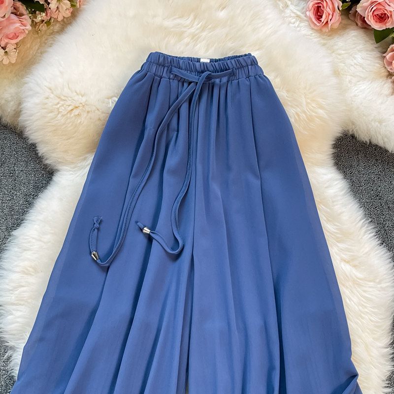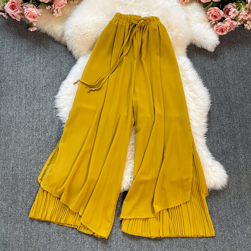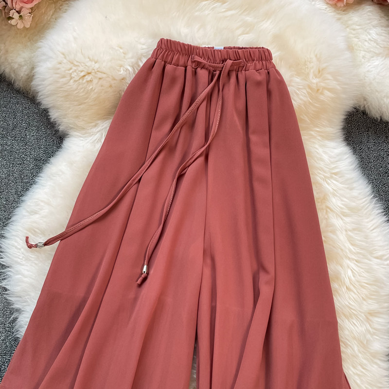 Летние шифоновые тонкие штаны для отдыха, эластичная талия, свободный прямой крой, высокая талия