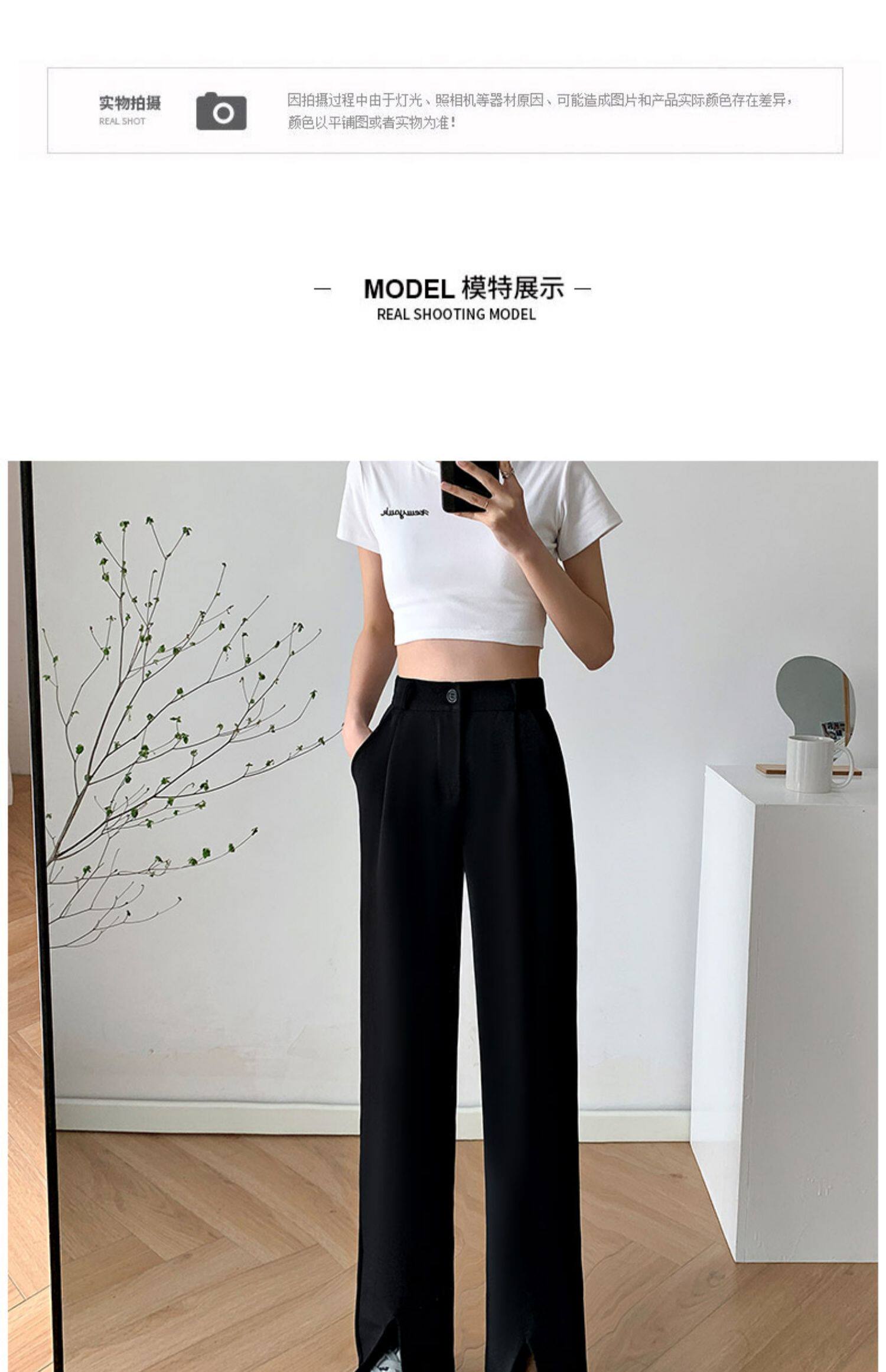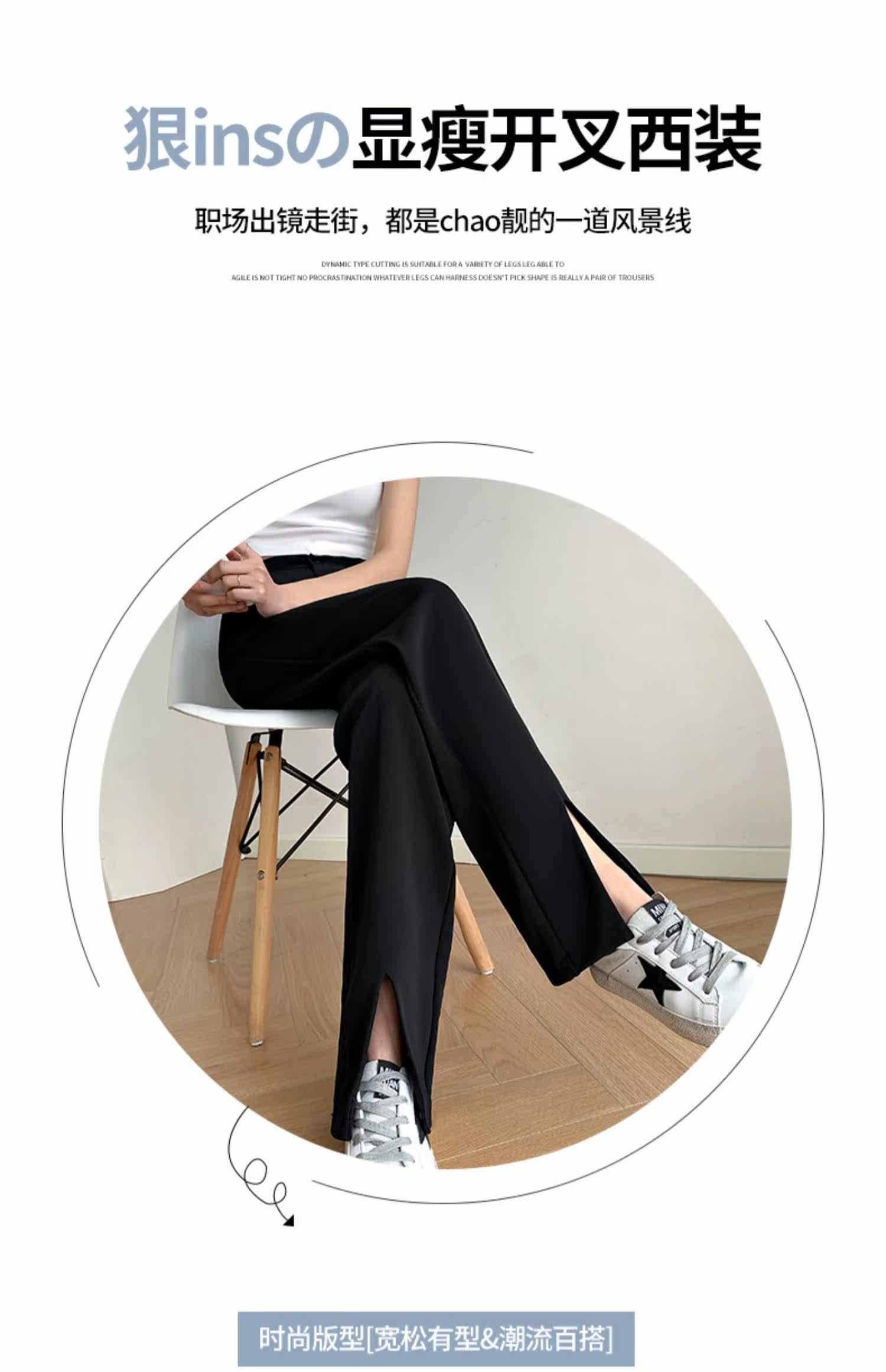 Костюм, осенние черные штаны, свободный прямой крой, высокая талия, по фигуре, подходит для подростков