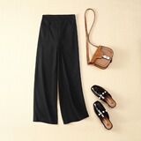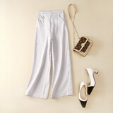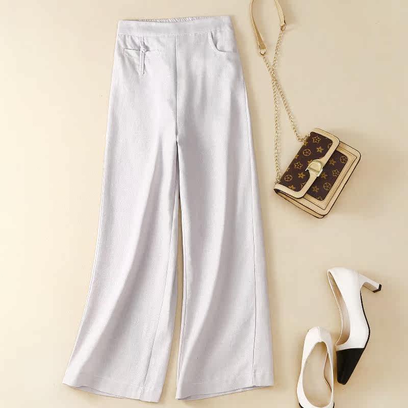 Летние штаны, из хлопка и льна, по фигуре, свободный прямой крой