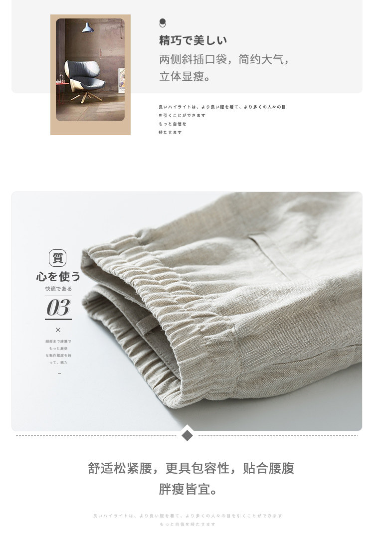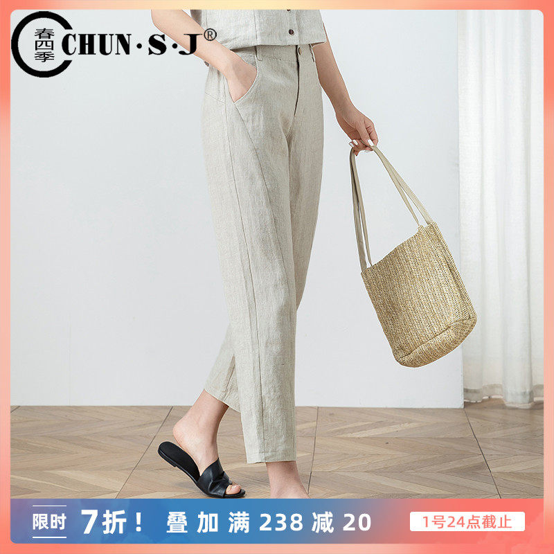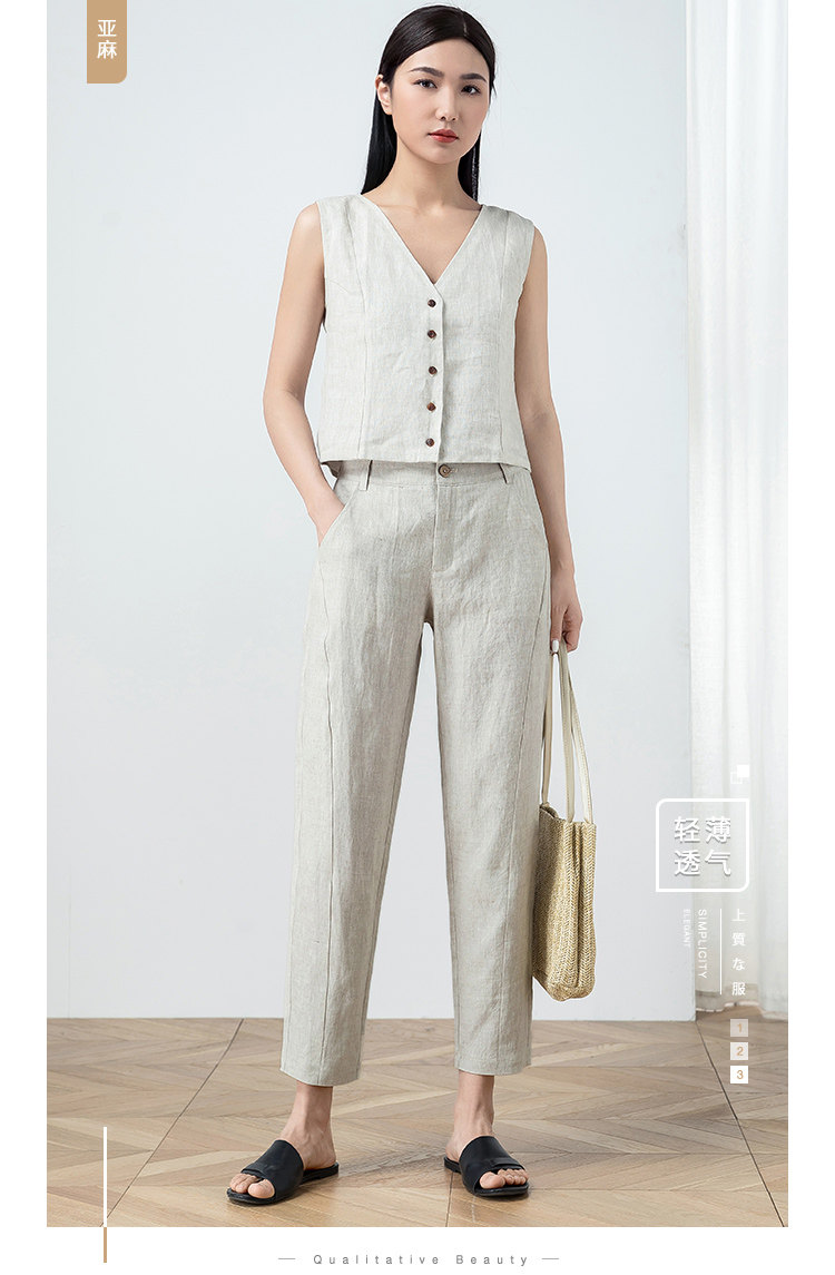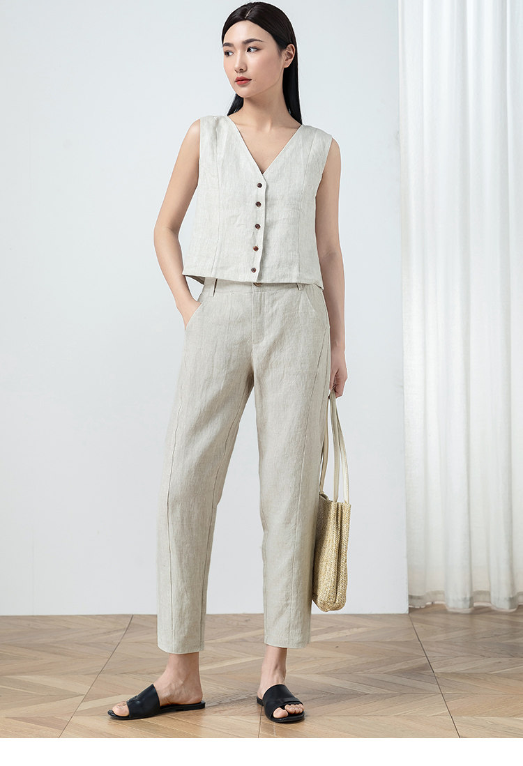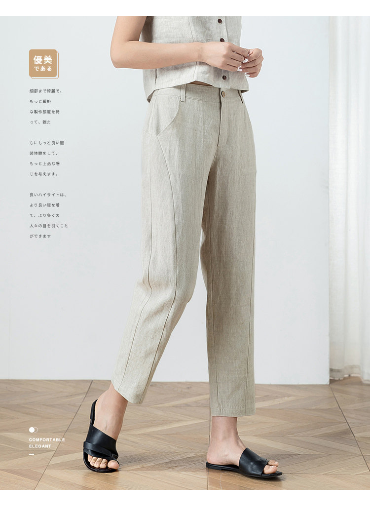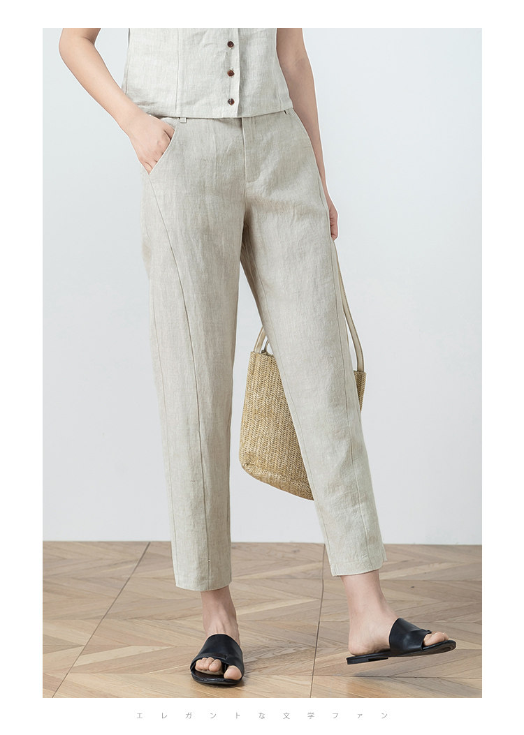 Тонкие штаны для отдыха, из хлопка и льна