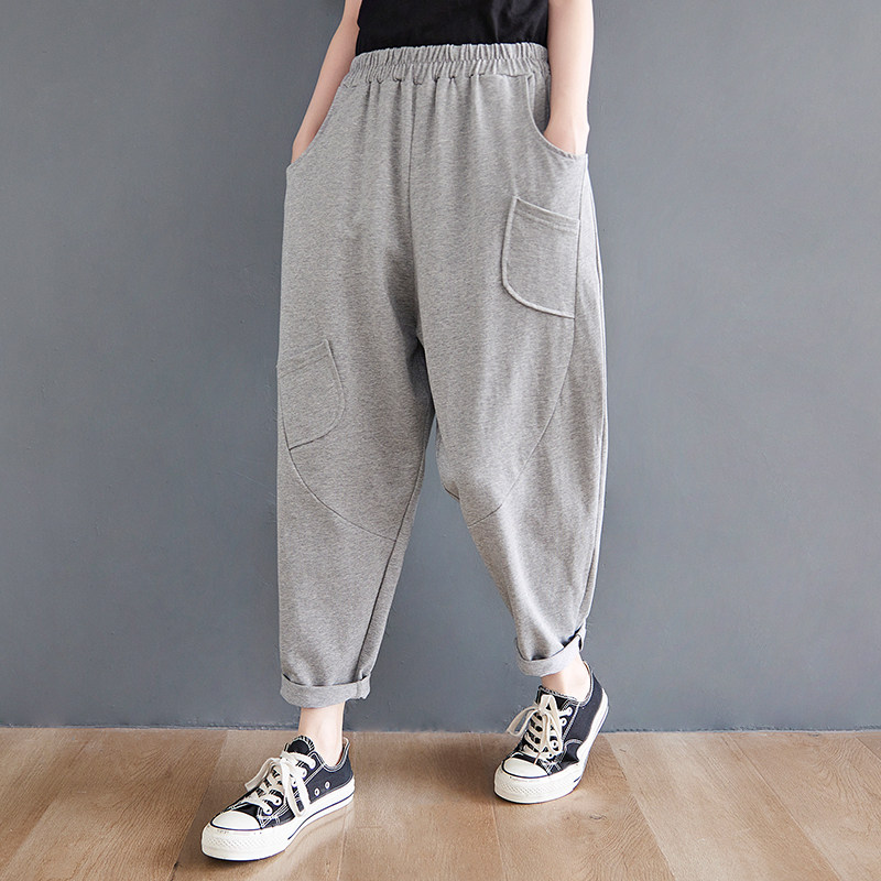 Летние трикотажные штаны, оверсайз, эластичная талия