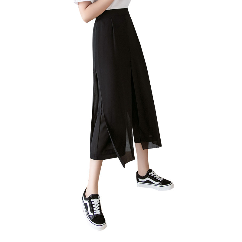 Шифоновые штаны, юбка, черный тонкий комплект, свободный крой, 2022