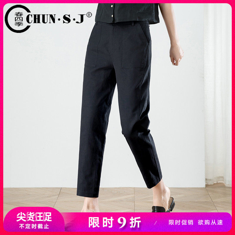 Черные летние шелковые тонкие штаны для отдыха, из хлопка и льна, сезон 2021, высокая талия, свободный прямой крой