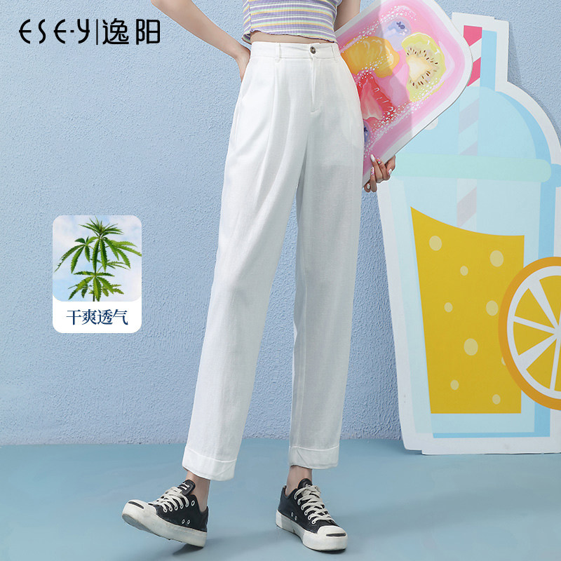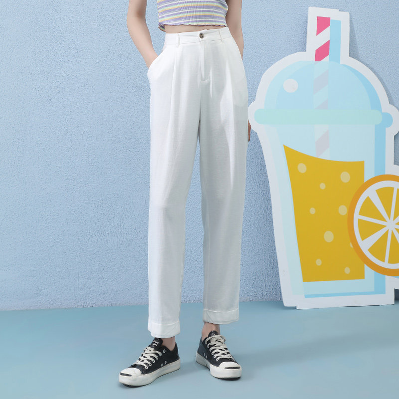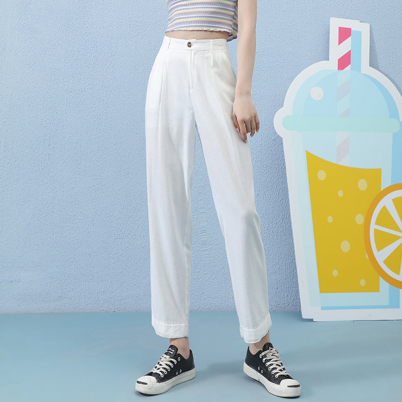 Летние штаны, свободный прямой крой, сезон 2021, высокая талия, оверсайз
