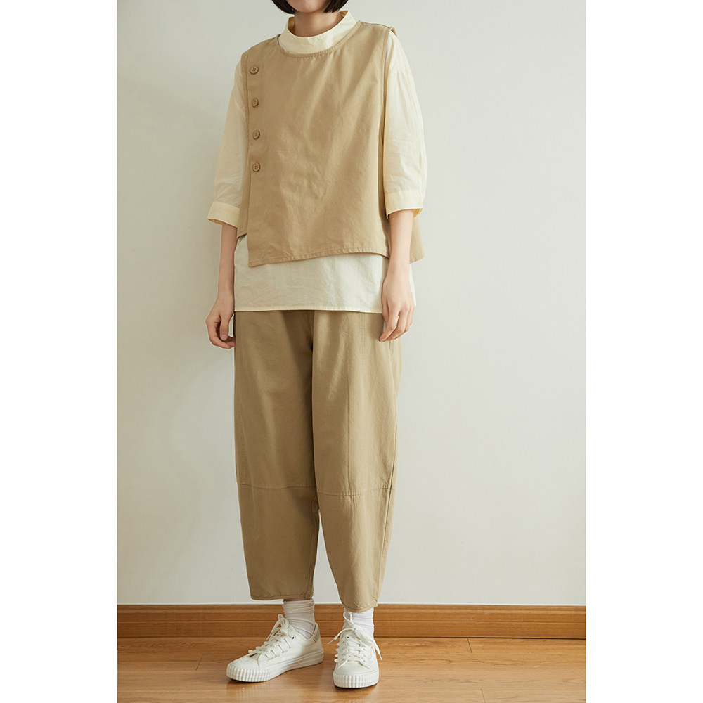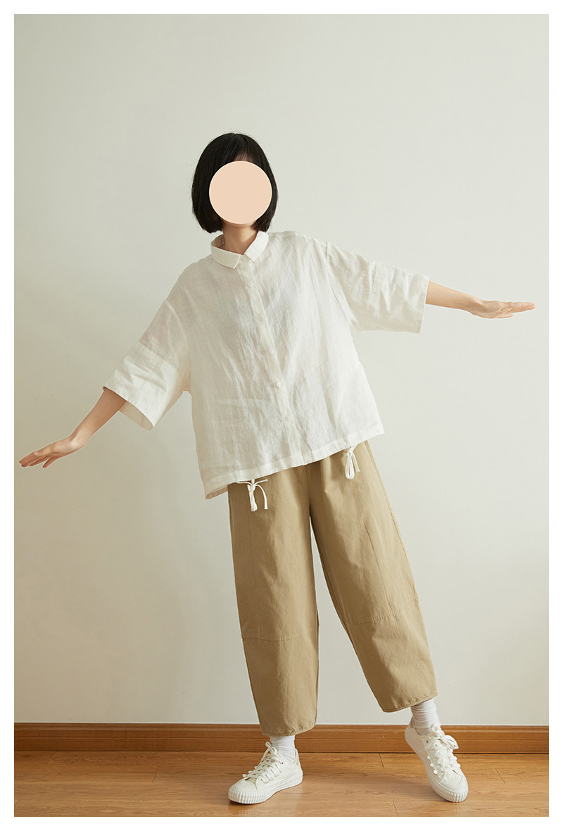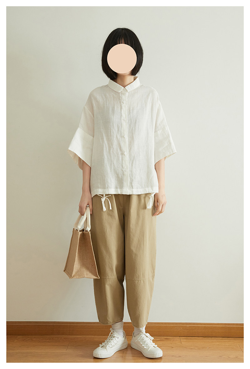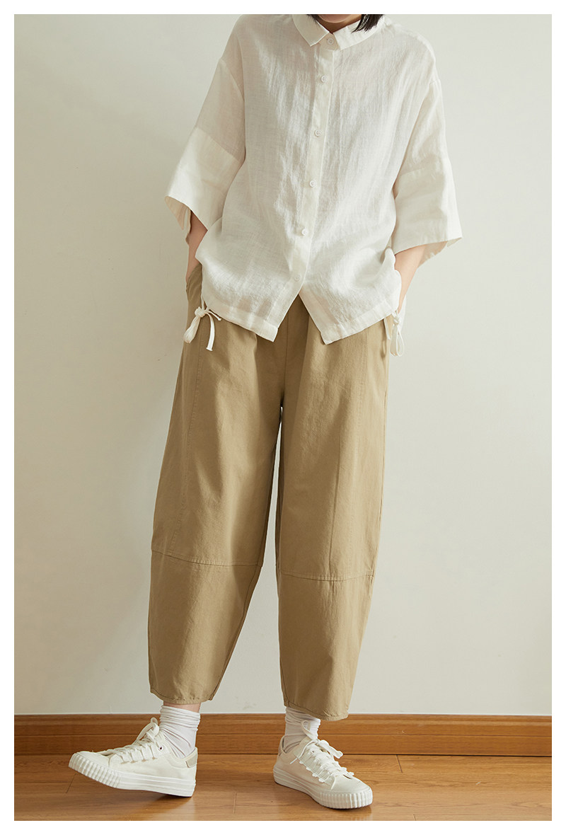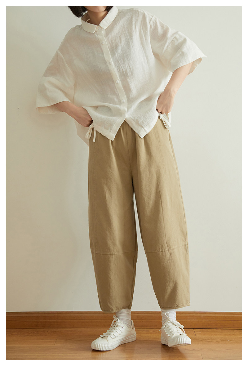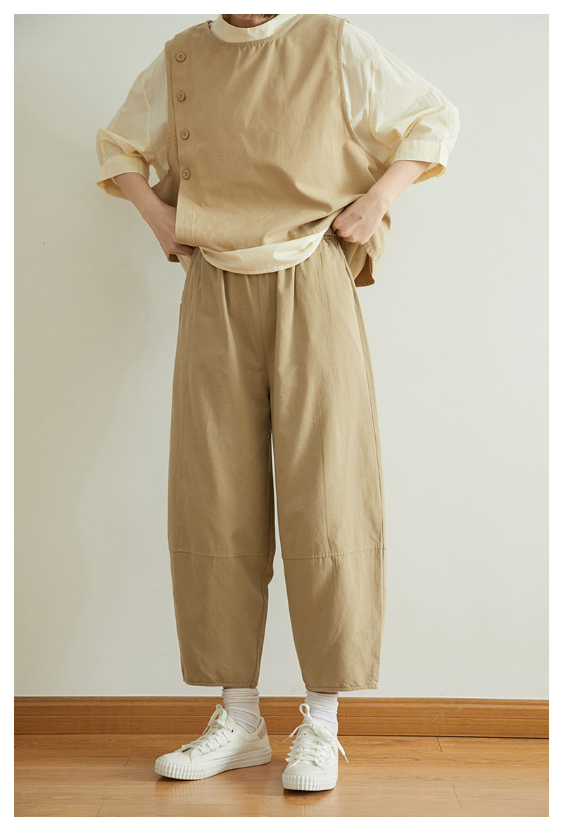 Японские летние штаны для отдыха, воздушный шар, коллекция 2021, эластичная талия, свободный прямой крой