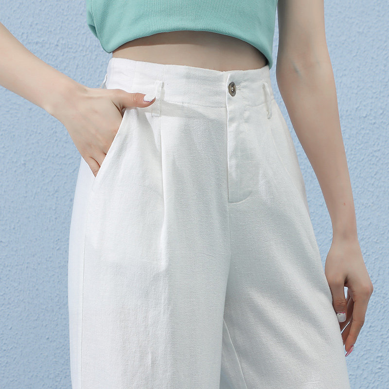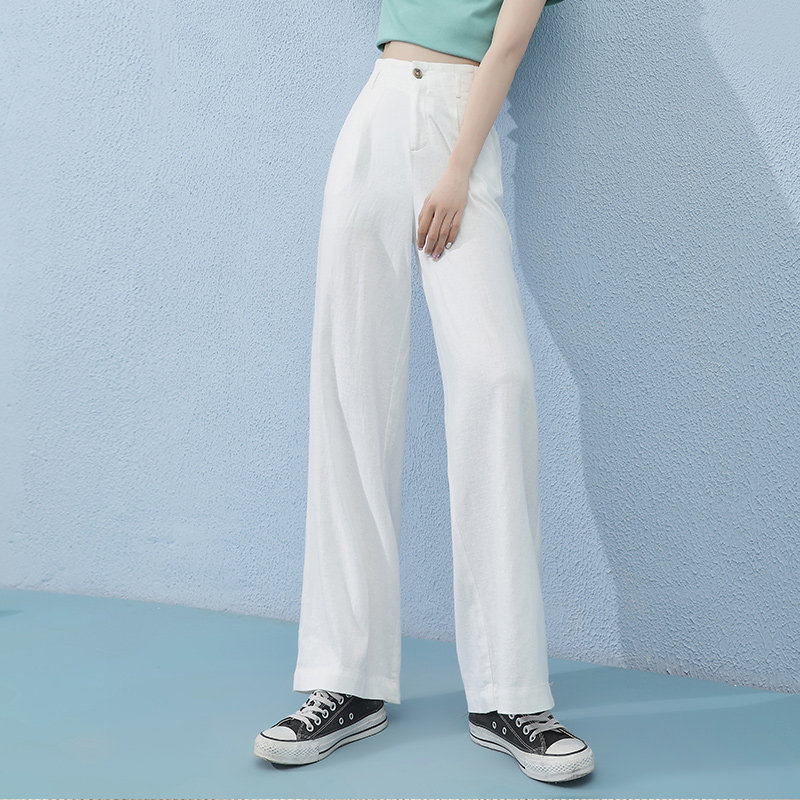 Белые летние тонкие штаны, сезон 2021, свободный прямой крой