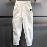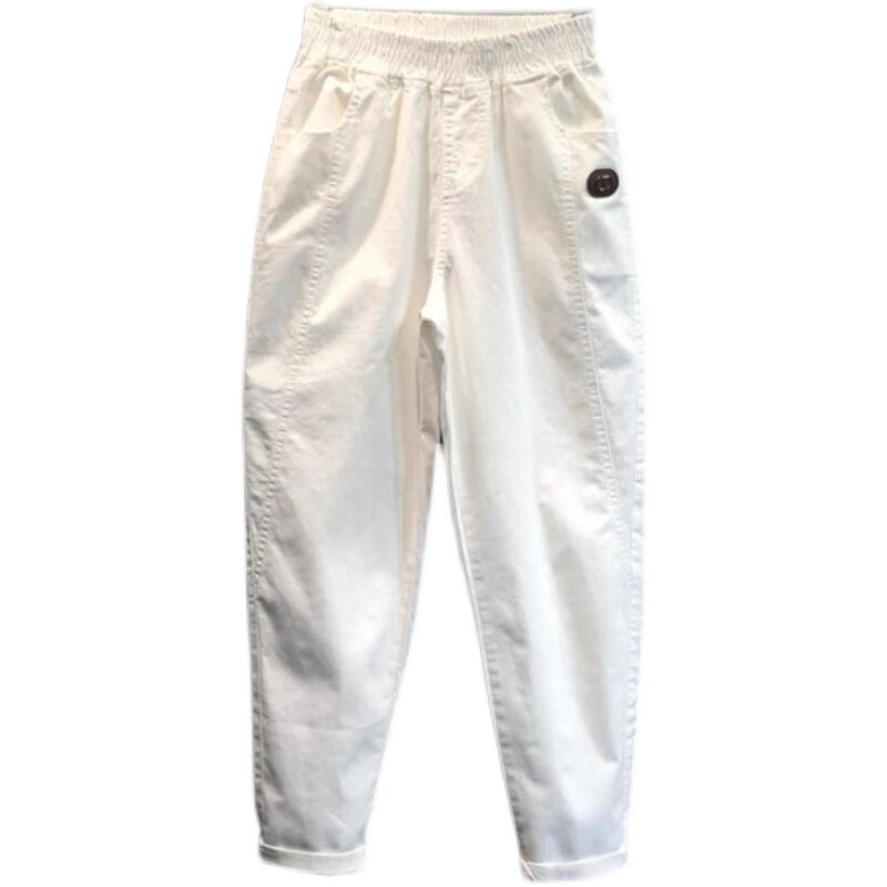 Белые летние штаны, коллекция 2022, эластичная талия, свободный крой