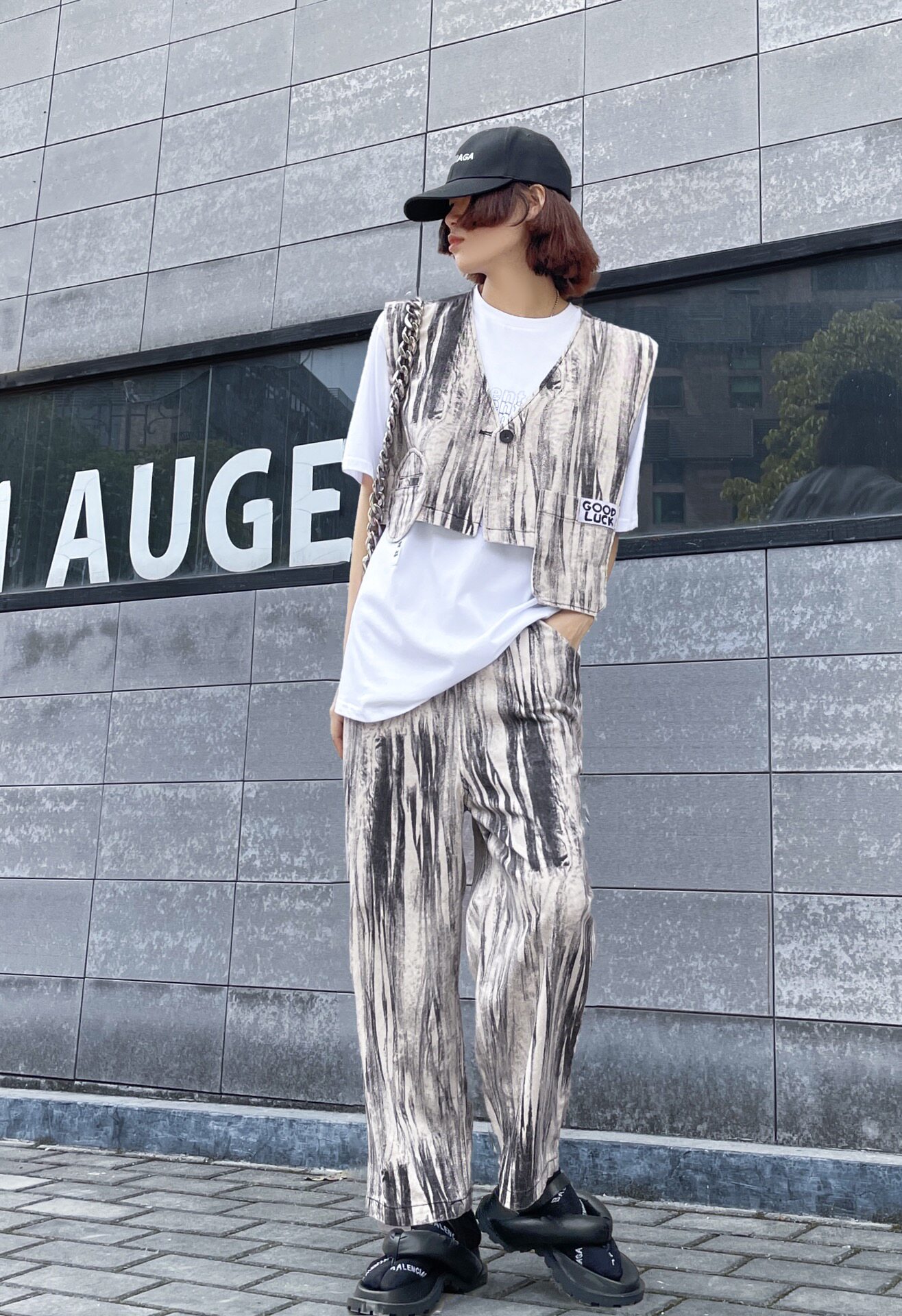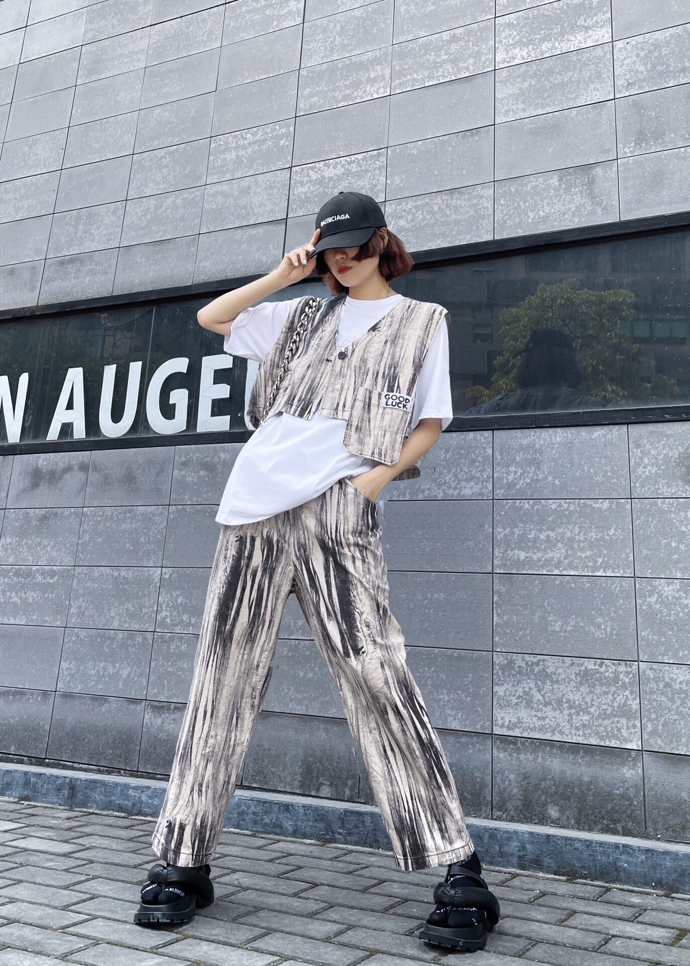 Оригинальные дизайнерские штаны, по фигуре, свободный крой, высокая талия