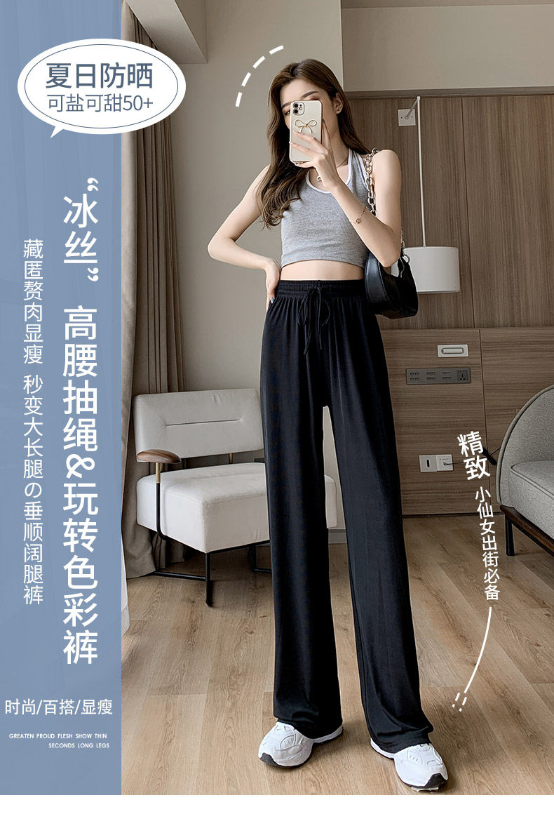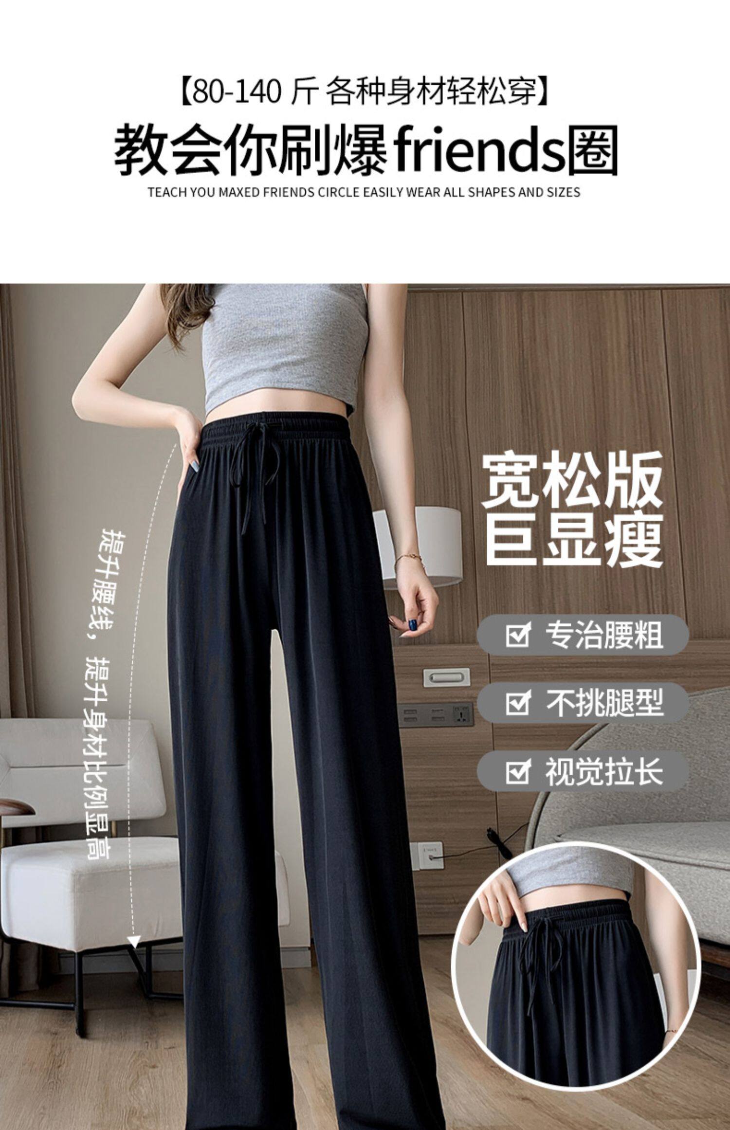 Шелковые тонкие штаны, 2024 года, высокая талия, большой размер, по фигуре, свободный прямой крой