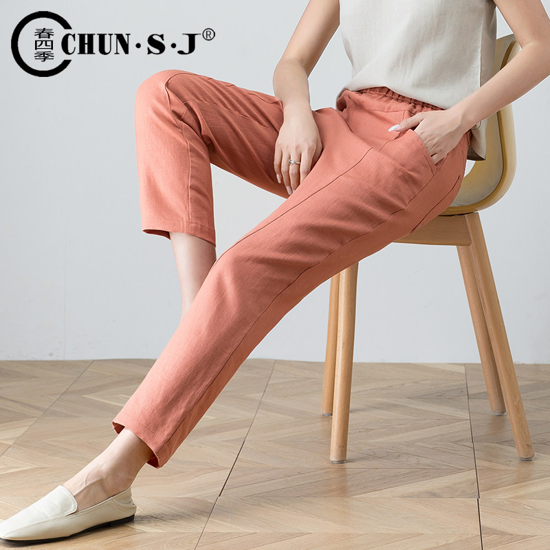 Тонкие штаны, повседневные брюки, оверсайз, подходит для подростков, из хлопка и льна