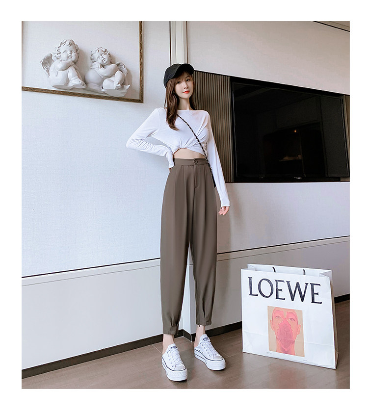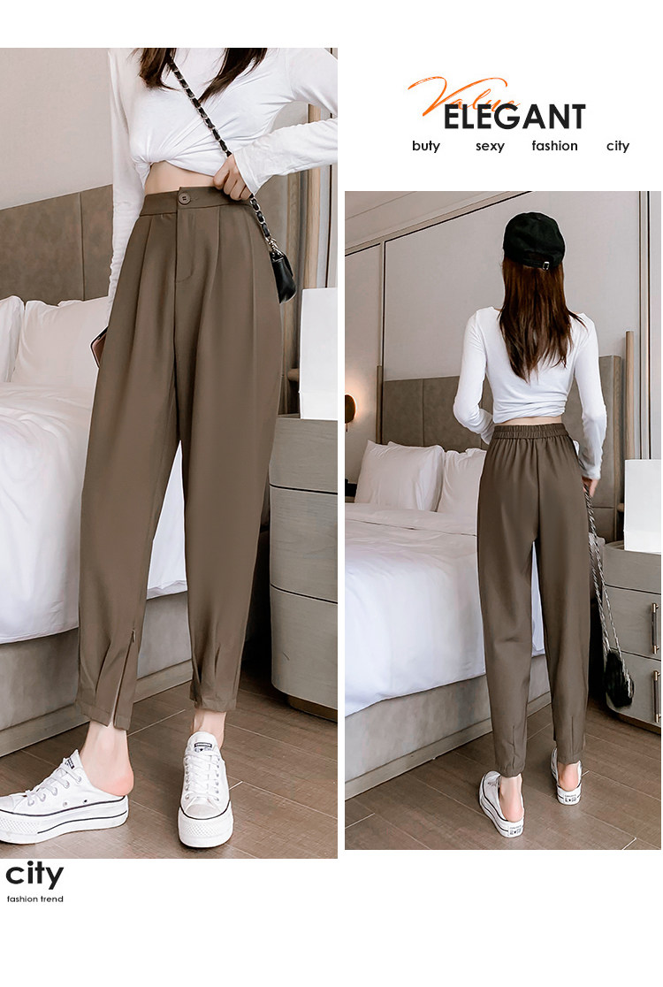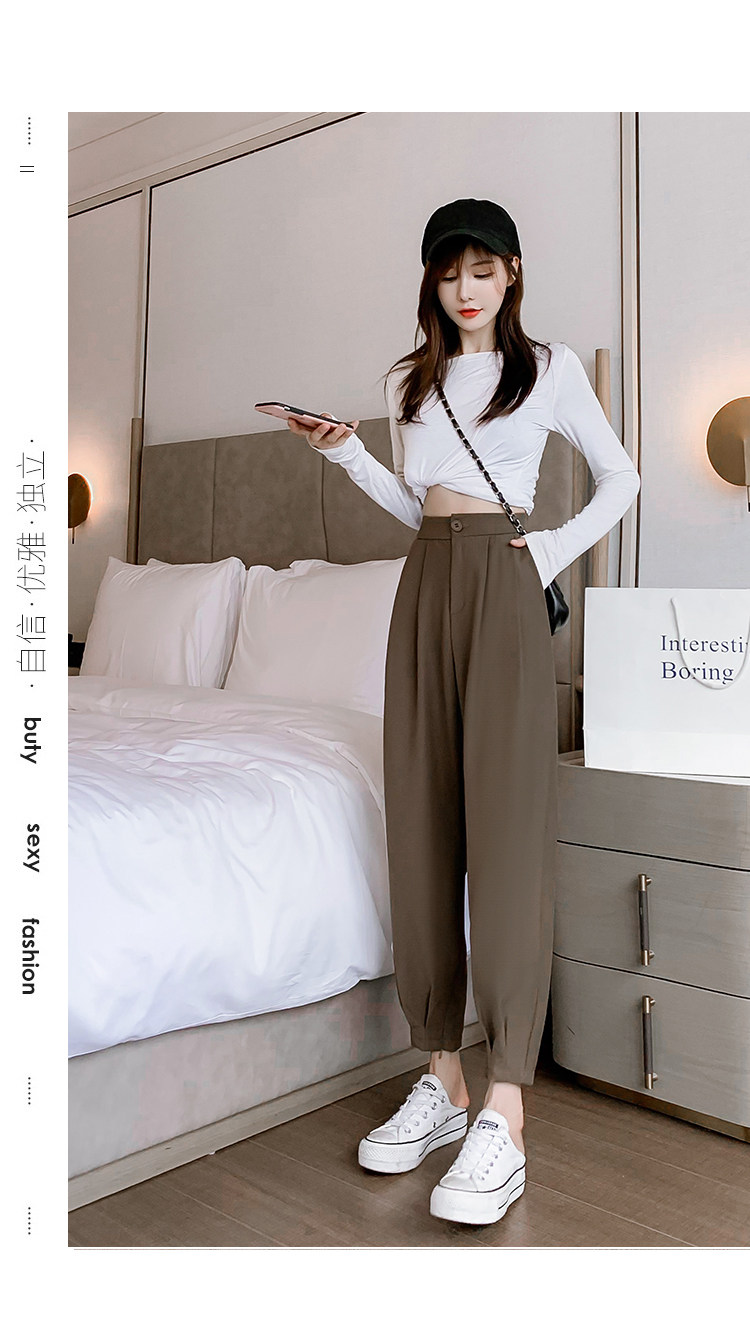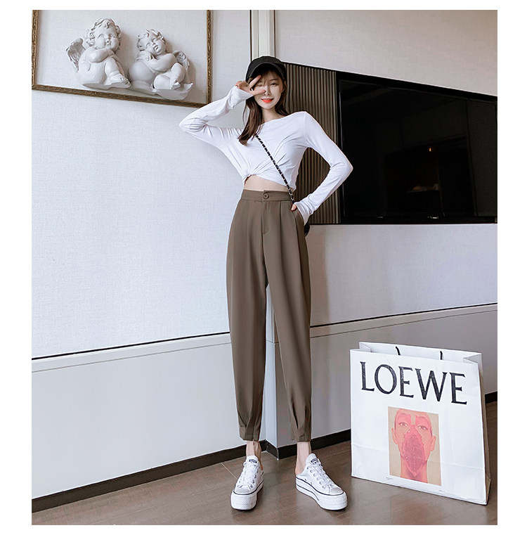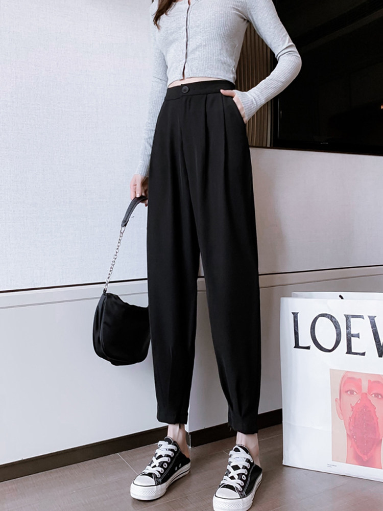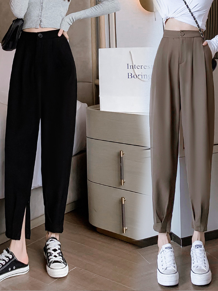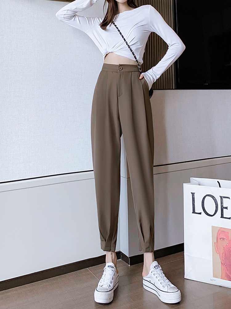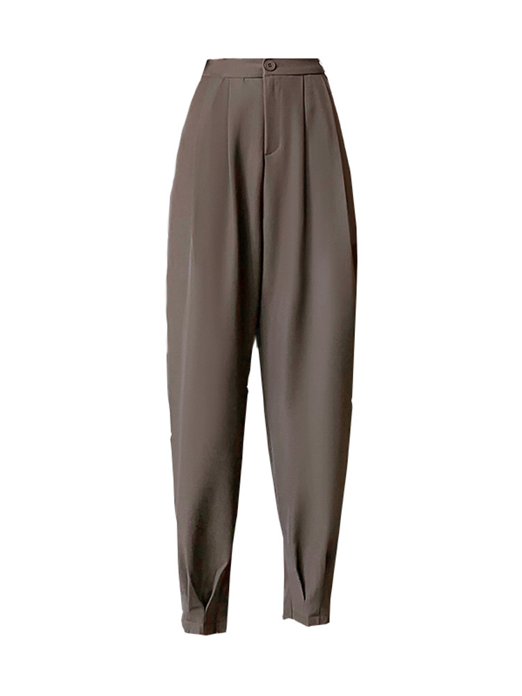 Костюм, осенние штаны, приталенный фонарь для отдыха, высокая талия, оверсайз