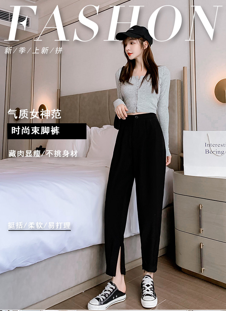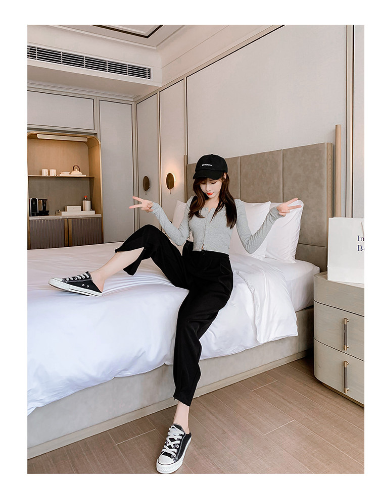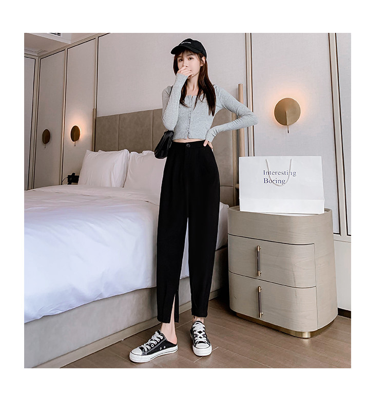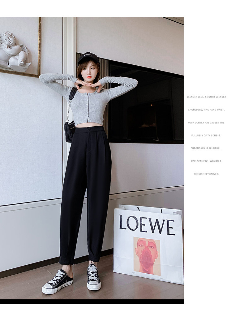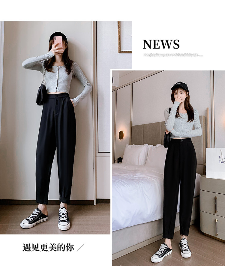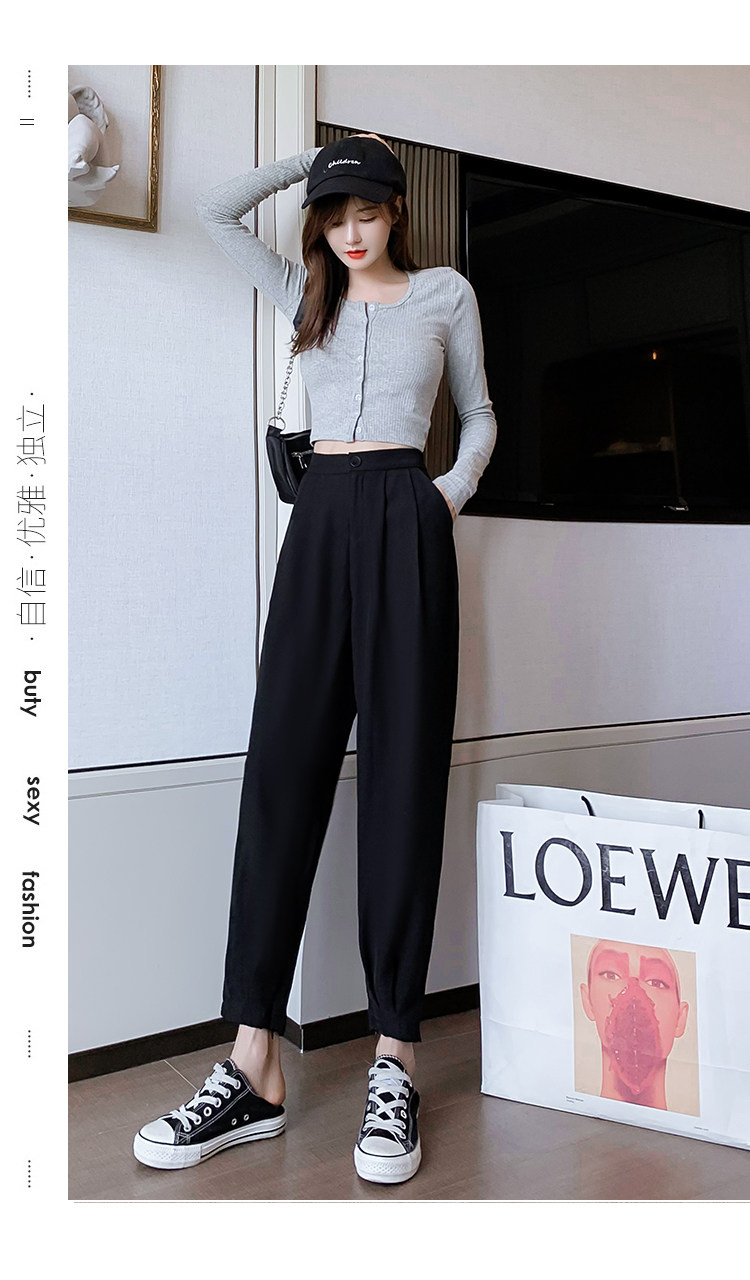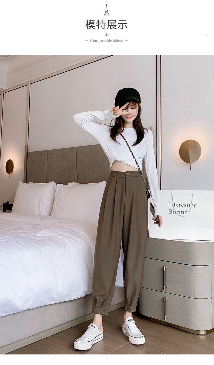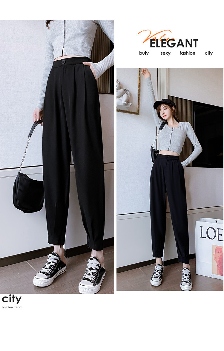 Костюм, осенние штаны, приталенный фонарь для отдыха, высокая талия, оверсайз