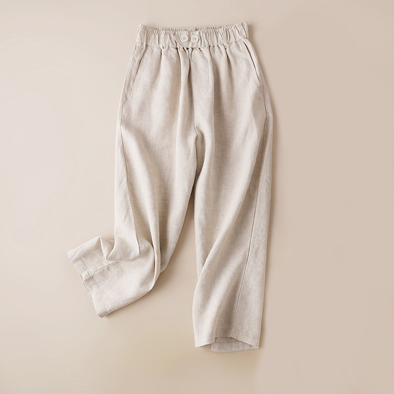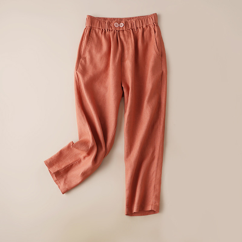 Тонкие штаны для отдыха, эластичная талия, оверсайз, из хлопка и льна