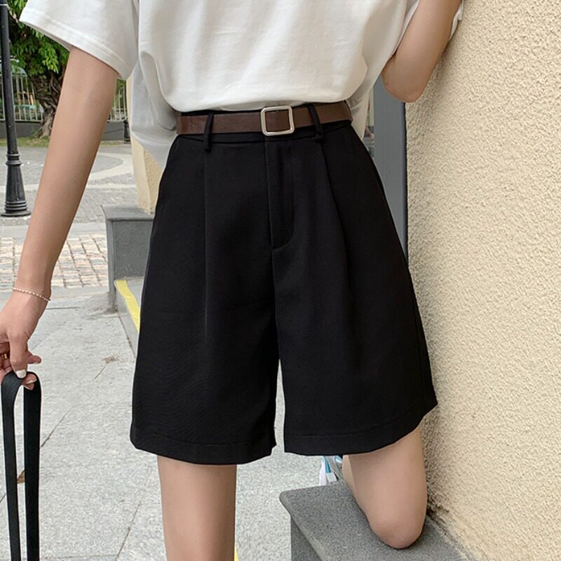 Костюм, шорты, тонкие черные штаны для отдыха, высокая талия, свободный крой, подходит для подростков