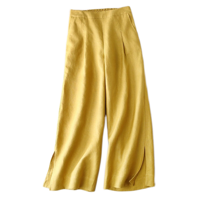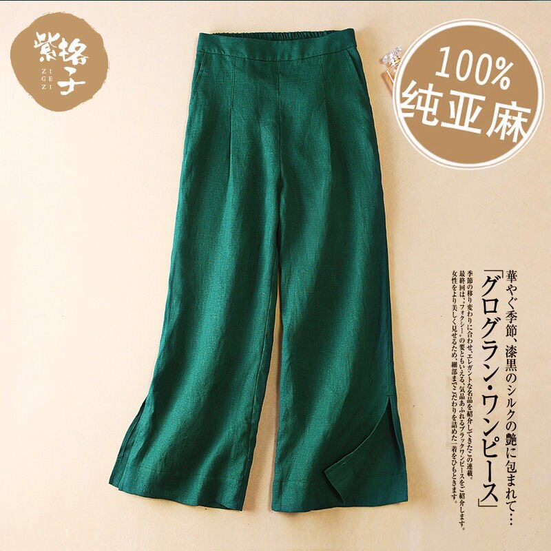 Штаны, летние тонкие повседневные брюки, высокая талия, свободный прямой крой, из хлопка и льна