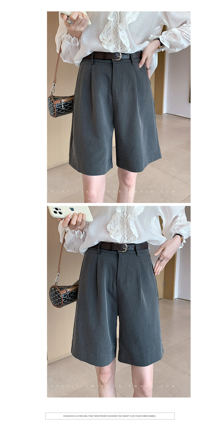 Костюм, весенние шорты, штаны, 2025 года, высокая талия, свободный прямой крой, оверсайз