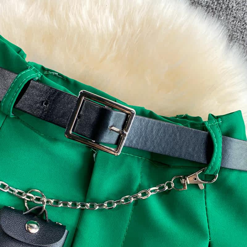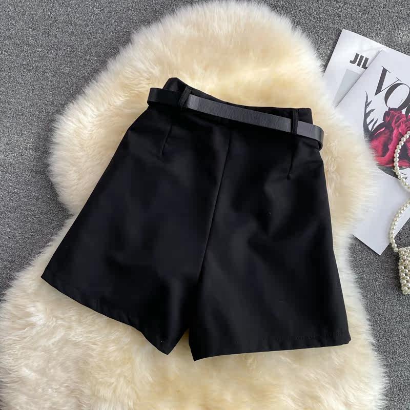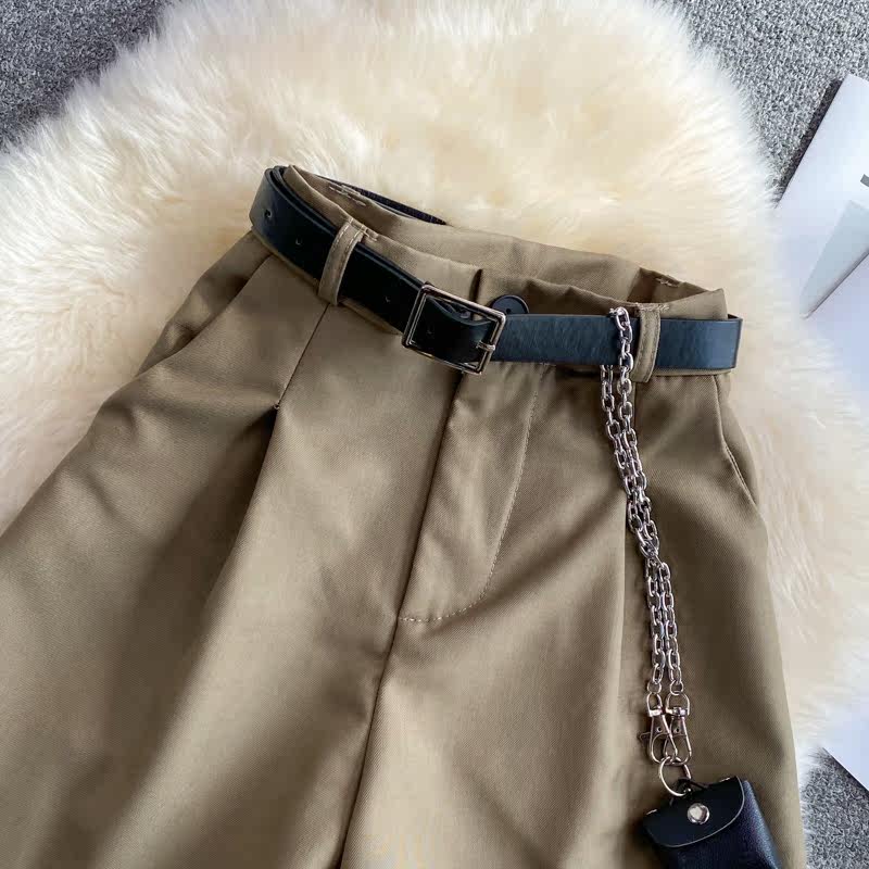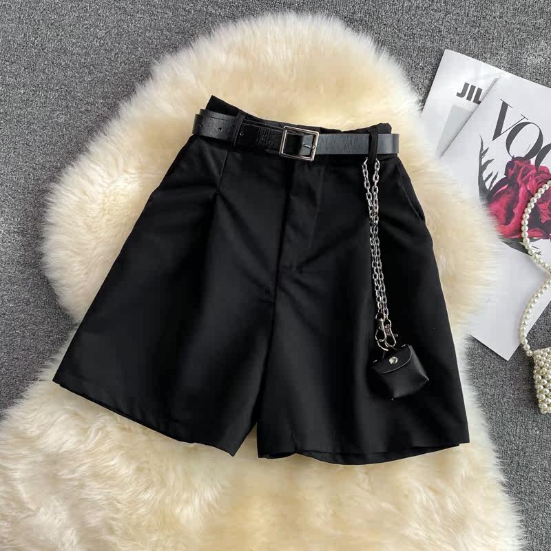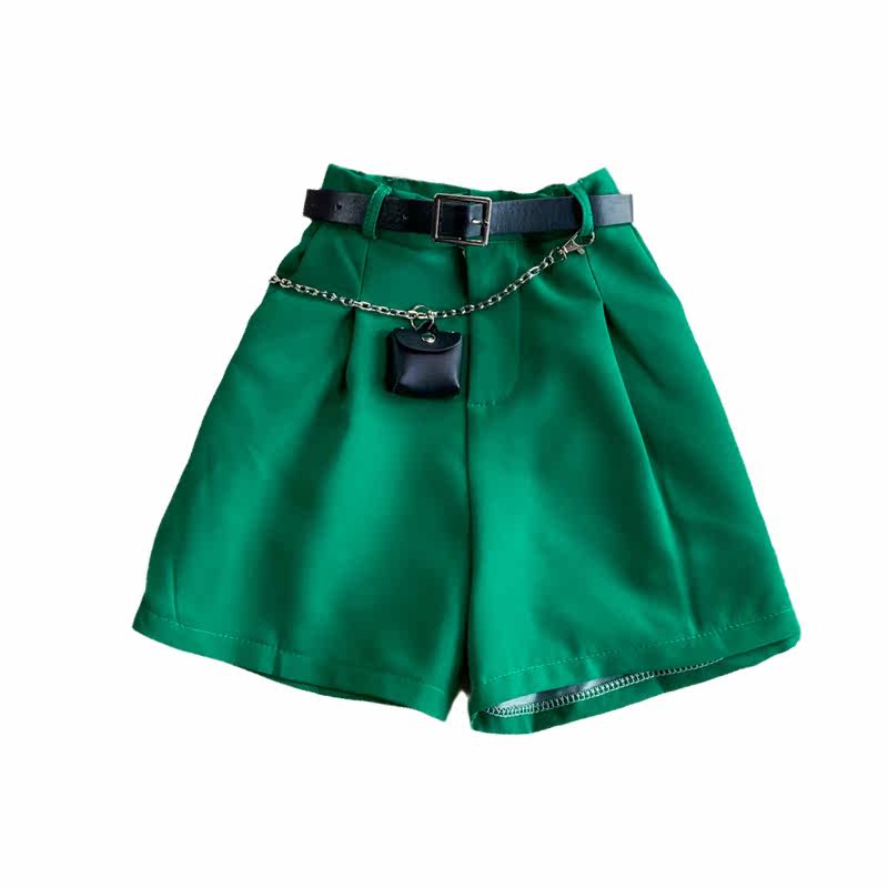 Шорты, штаны, высокая талия, 2021 года, в корейском стиле, оверсайз, А-силуэт