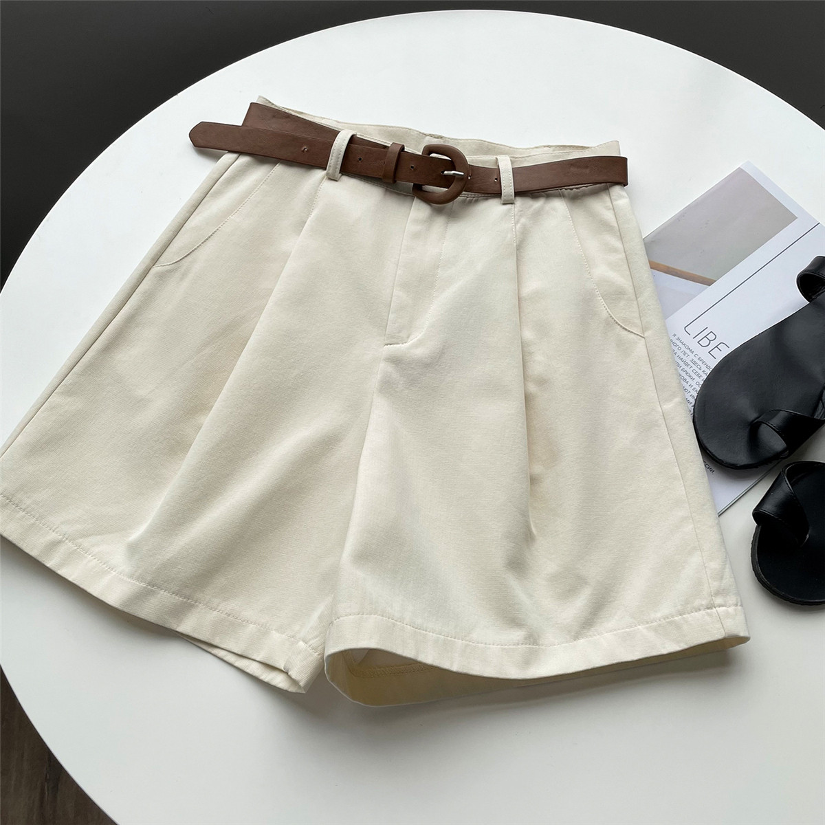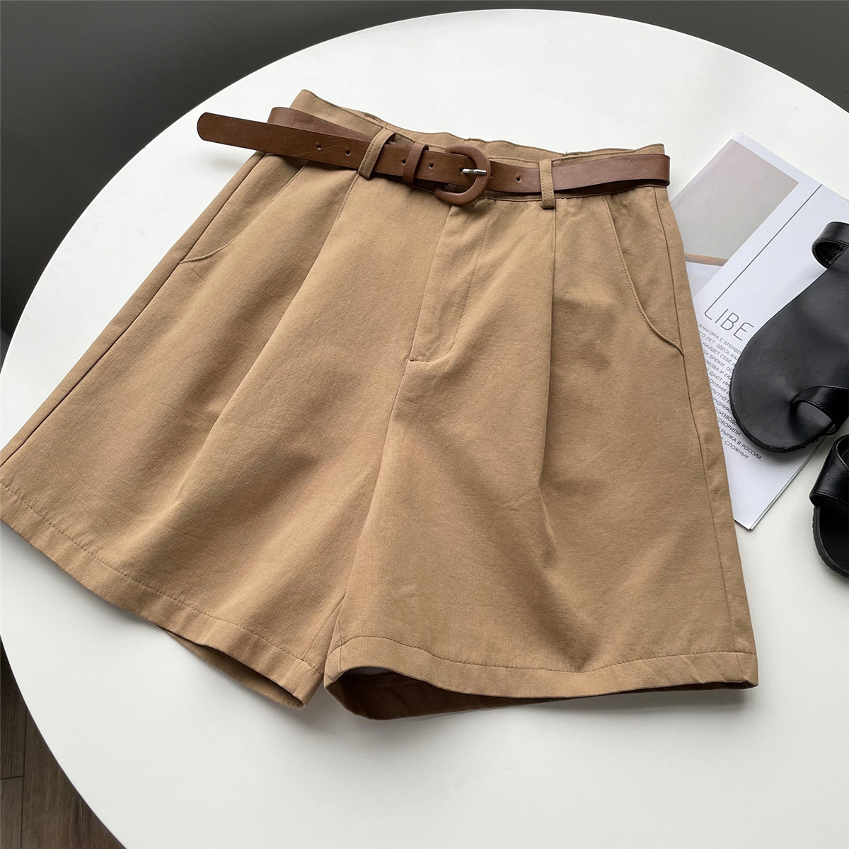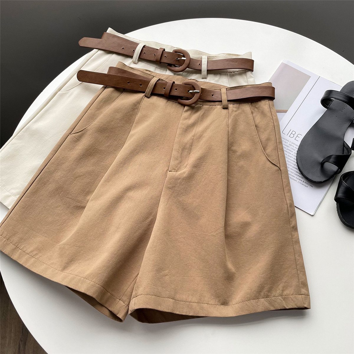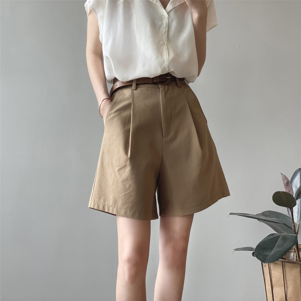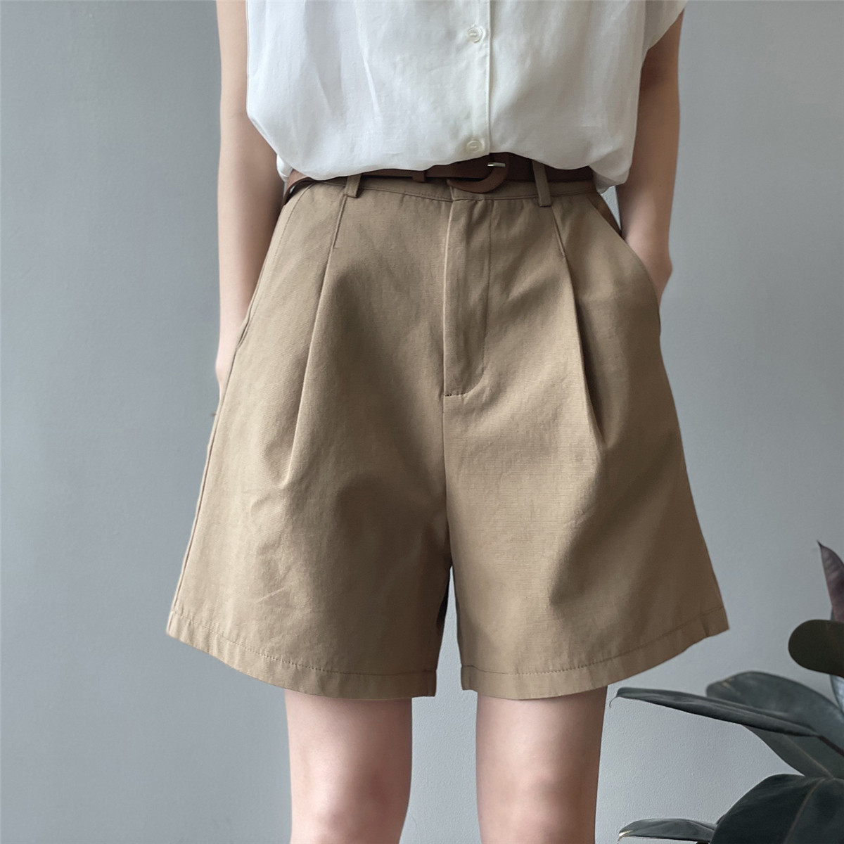 Шорты, тонкие приталенные модные штаны, коллекция 2021, высокая талия, свободный крой, оверсайз