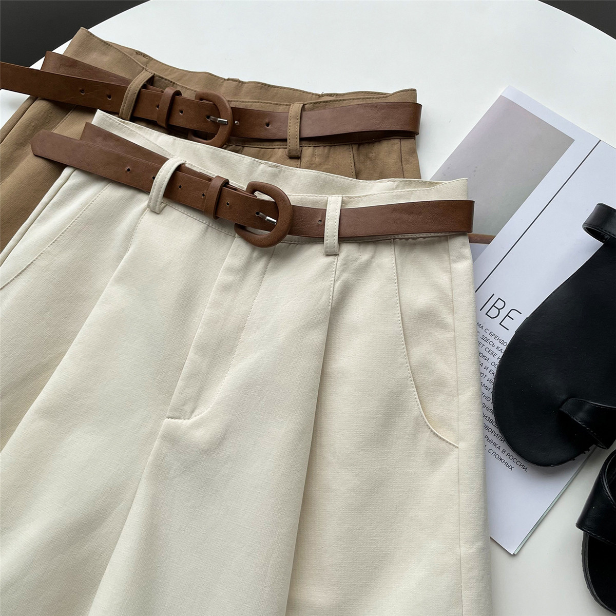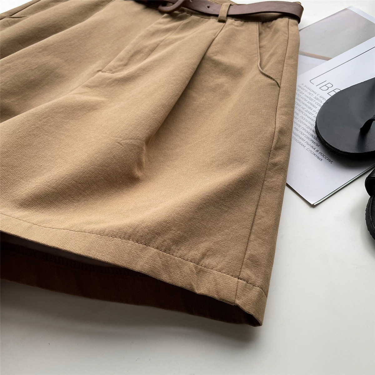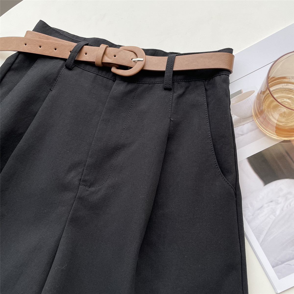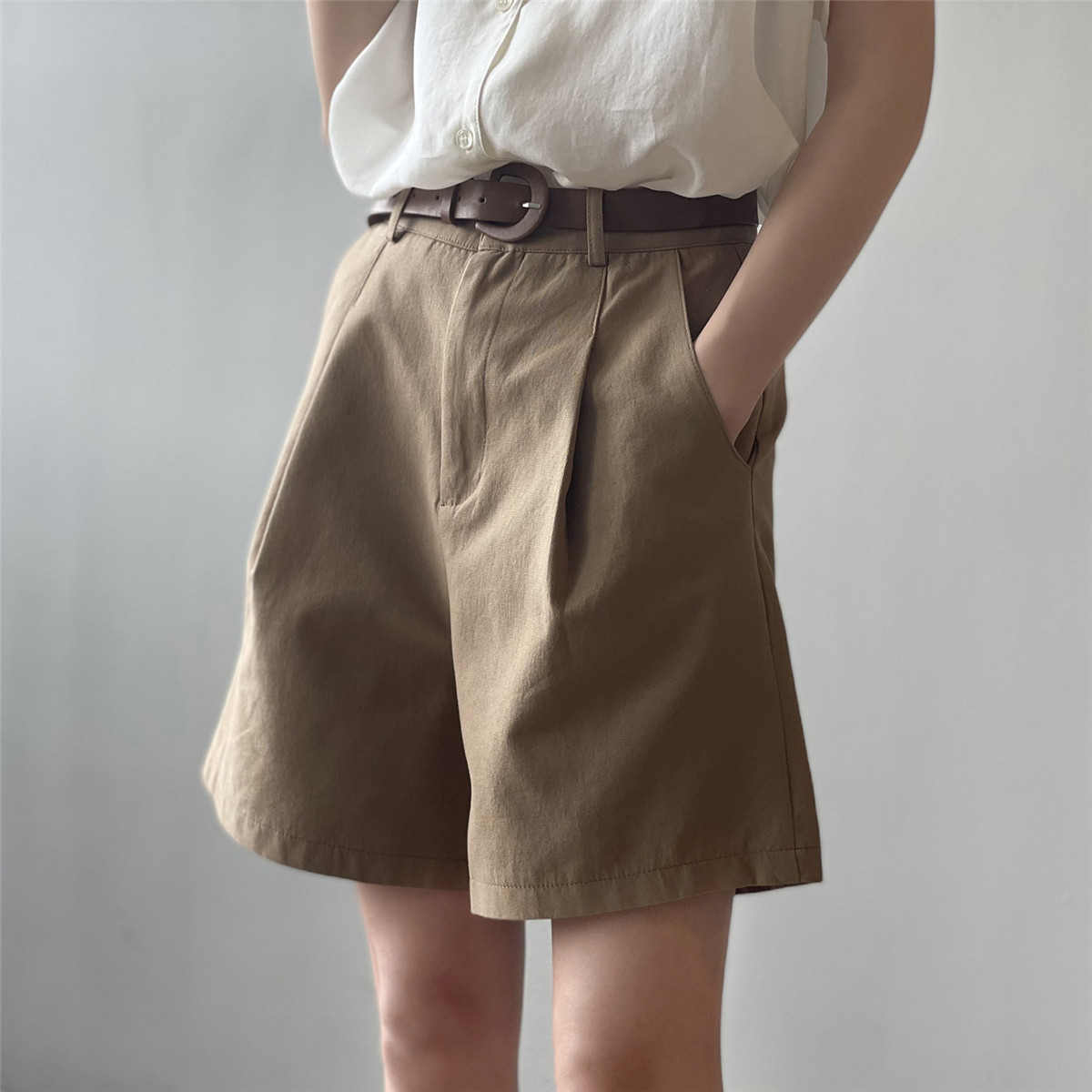 Шорты, тонкие приталенные модные штаны, коллекция 2021, высокая талия, свободный крой, оверсайз