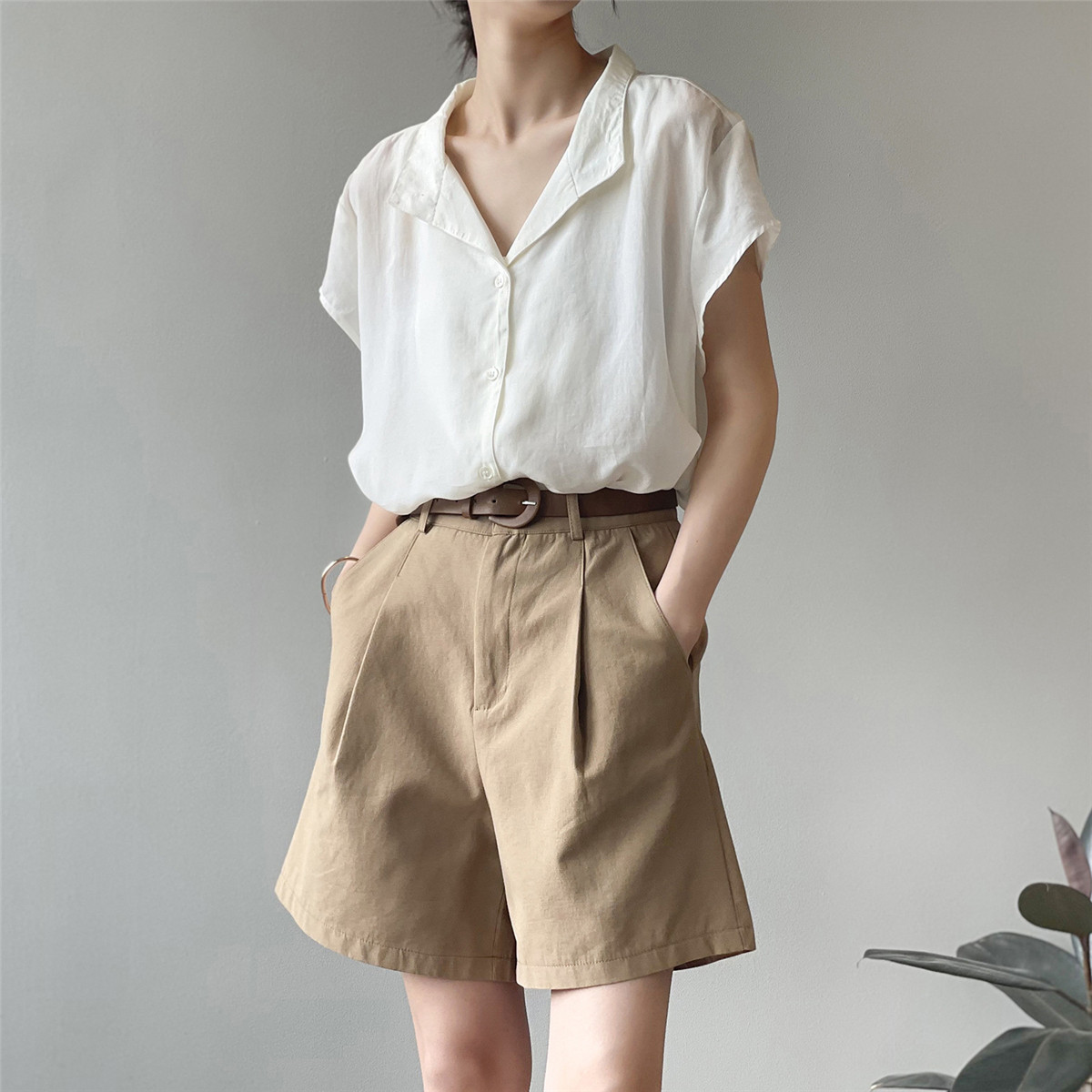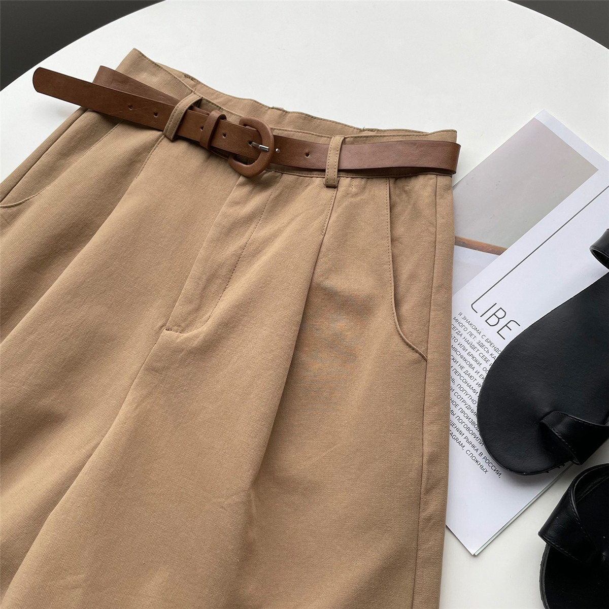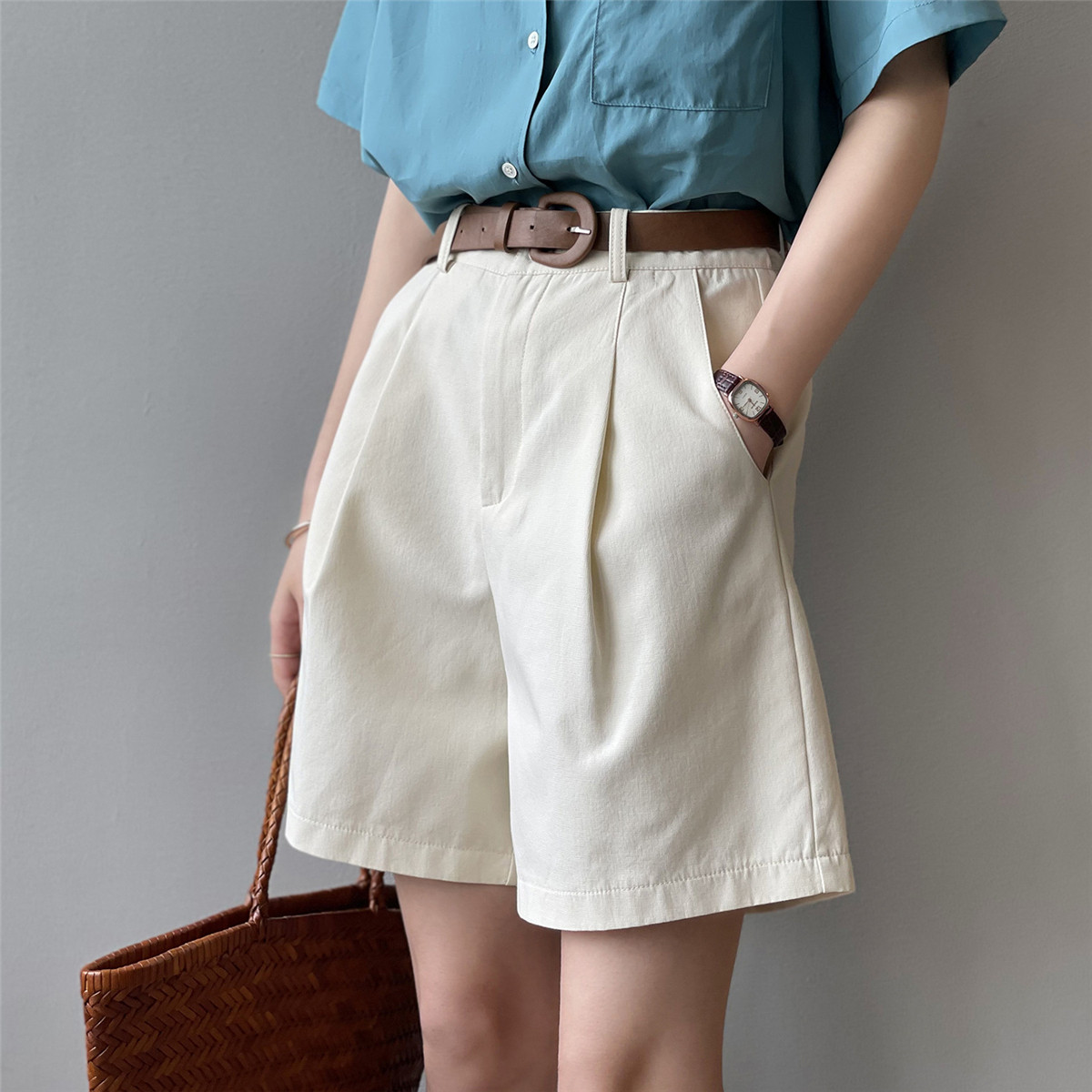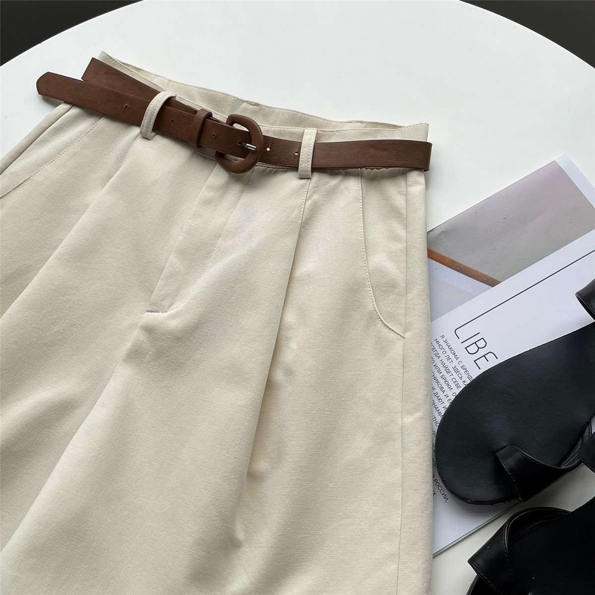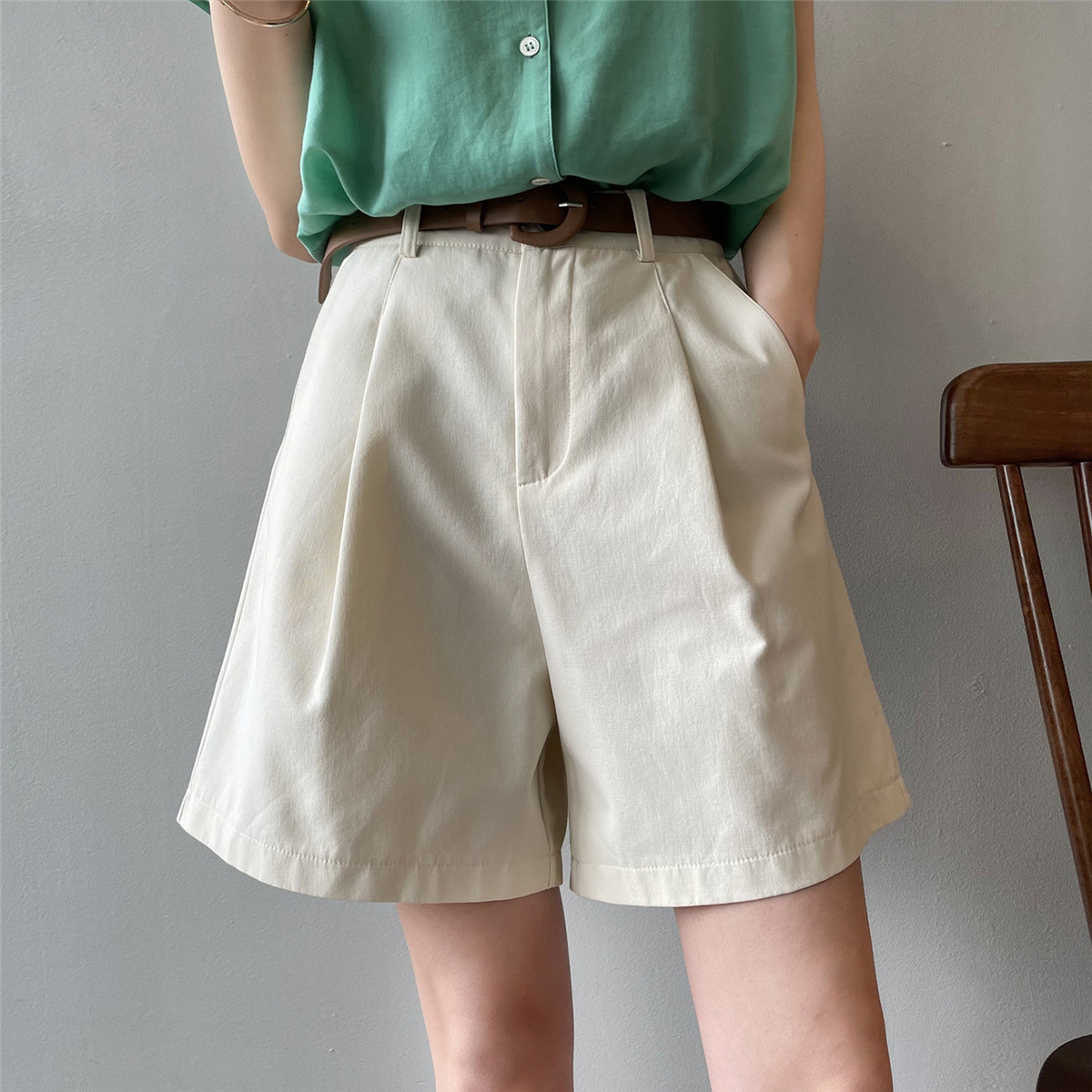 Шорты, тонкие приталенные модные штаны, коллекция 2021, высокая талия, свободный крой, оверсайз