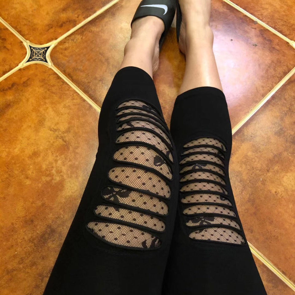 Леггинсы, тонкие летние эластичные кружевные штаны, большой размер