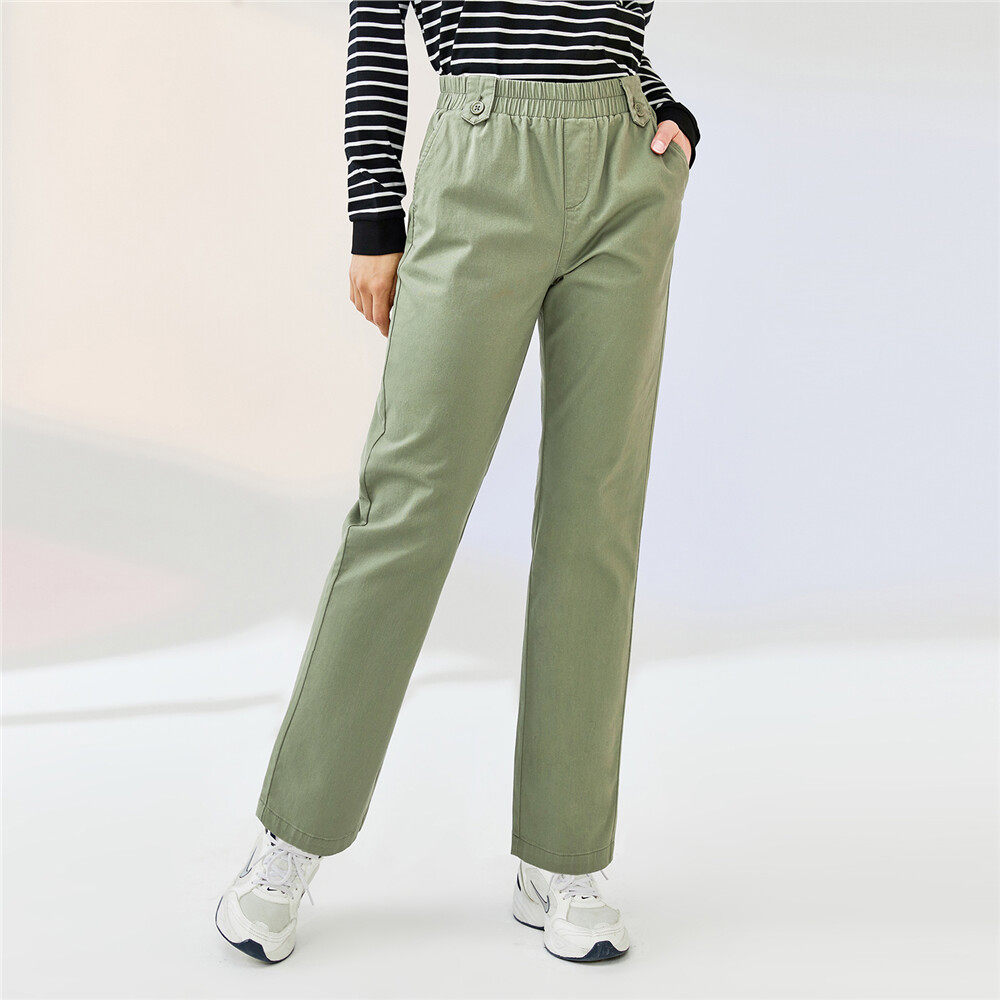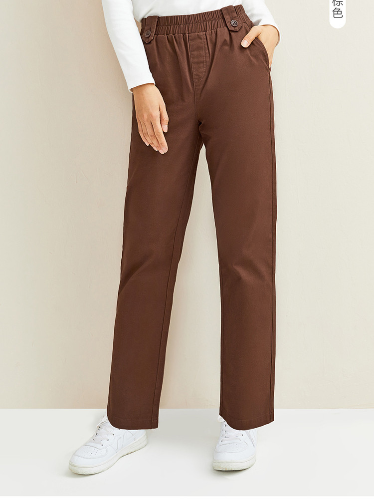Штаны, хлопковые повседневные брюки, подходит для подростков, по фигуре, свободный прямой крой, эластичная талия