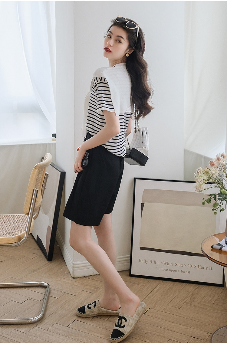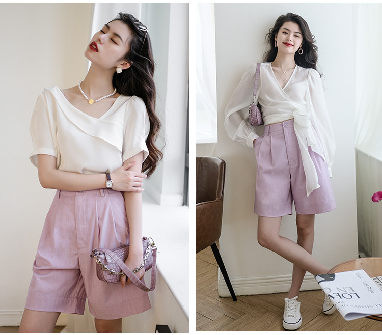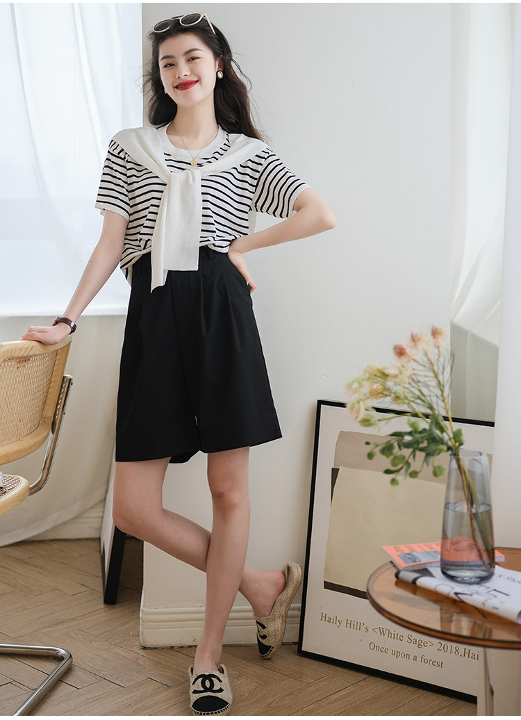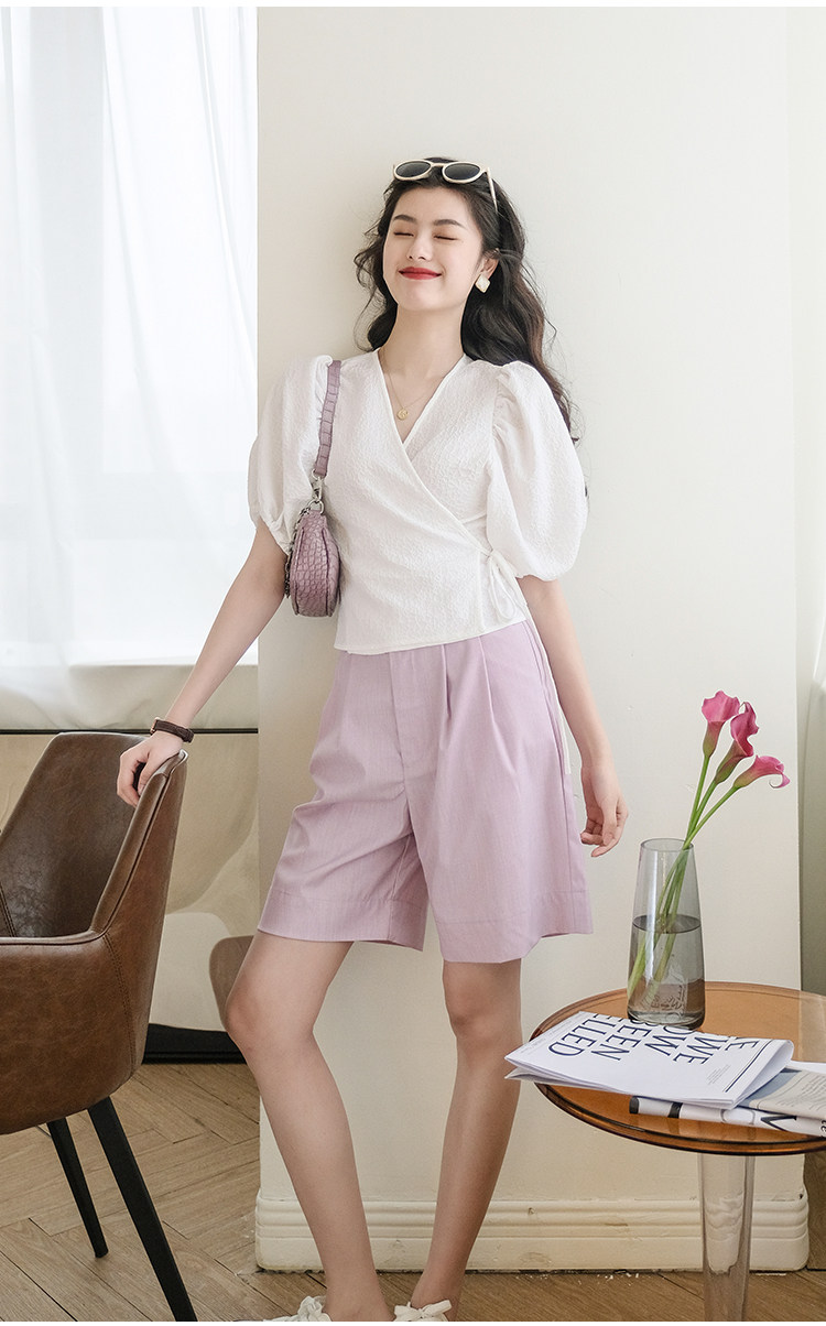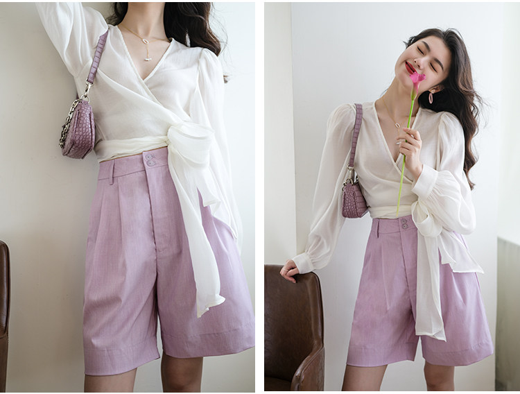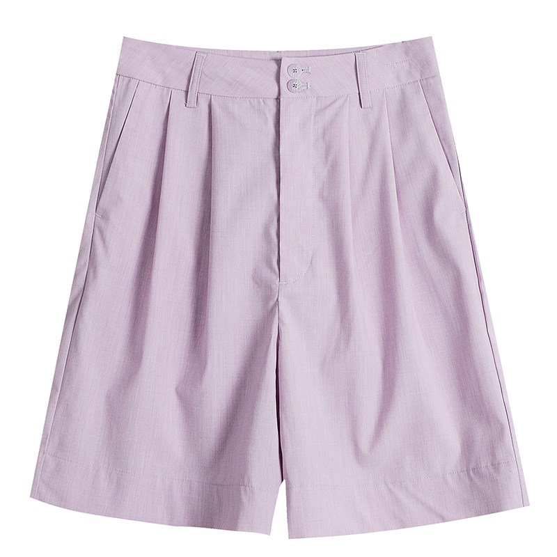 Костюм, летние шорты, приталенные штаны, из хлопка и льна, свободный прямой крой, сезон 2021, высокая талия, А-силуэт