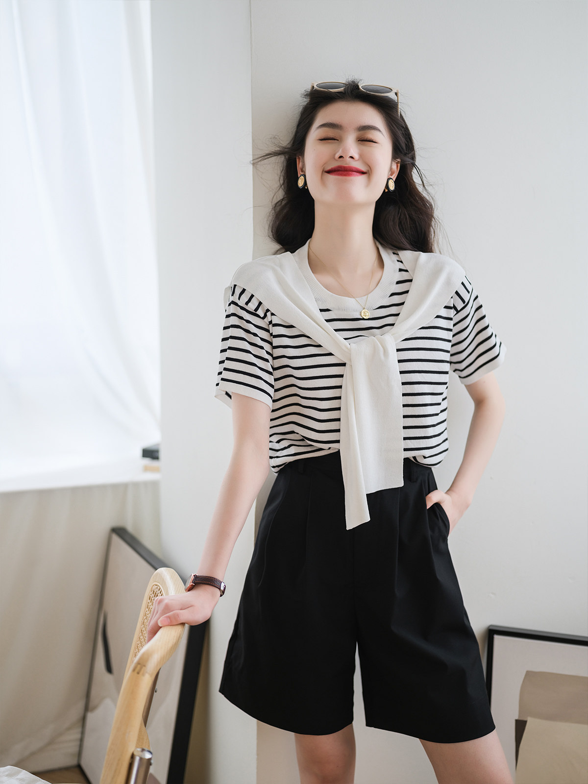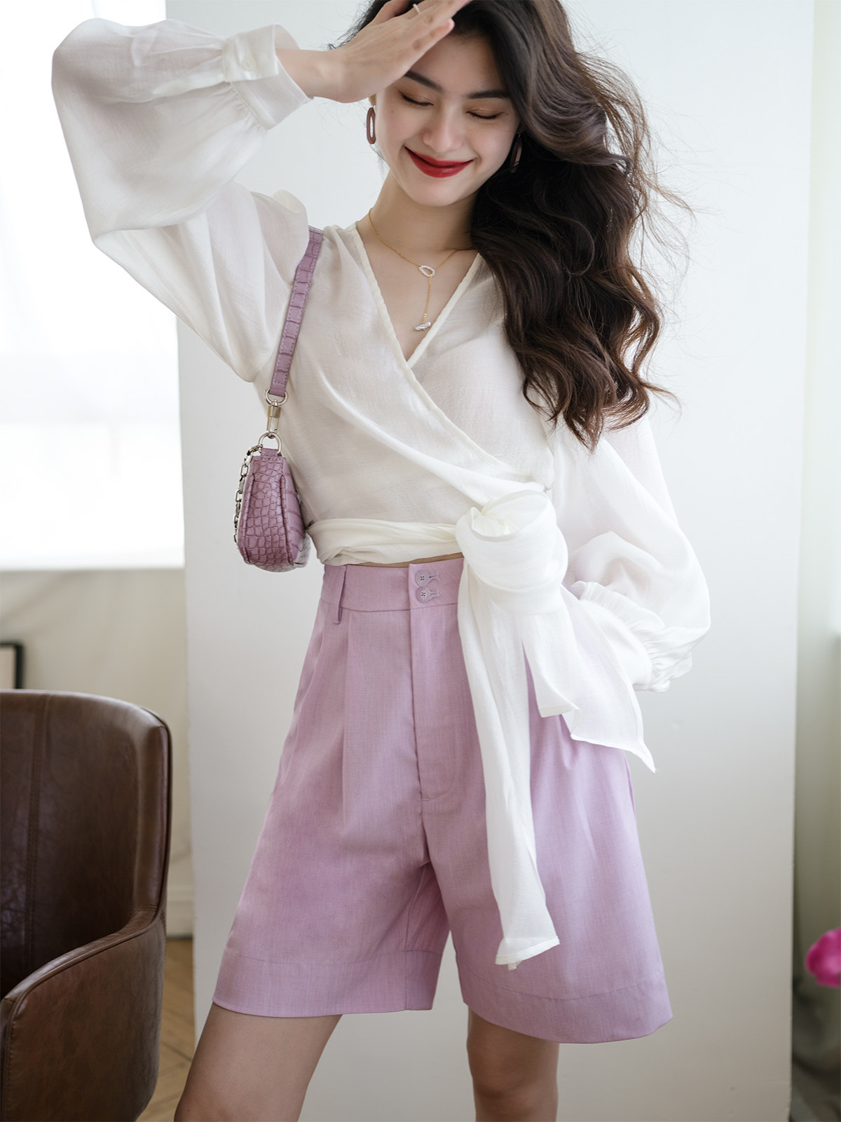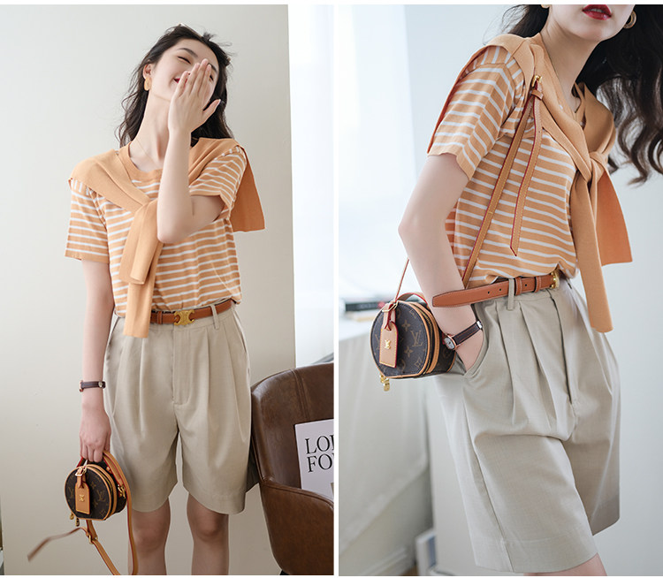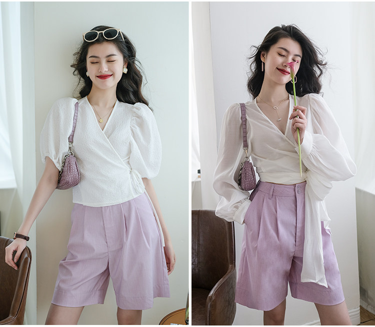 Костюм, летние шорты, приталенные штаны, из хлопка и льна, свободный прямой крой, сезон 2021, высокая талия, А-силуэт