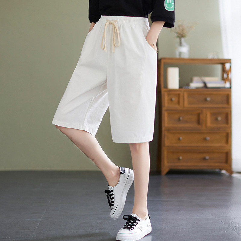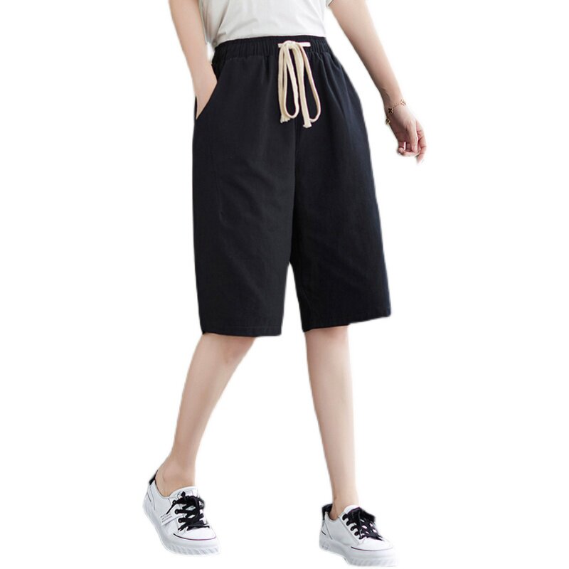Штаны, летняя одежда для отдыха, эластичная талия, на шнурках, большой размер, свободный прямой крой