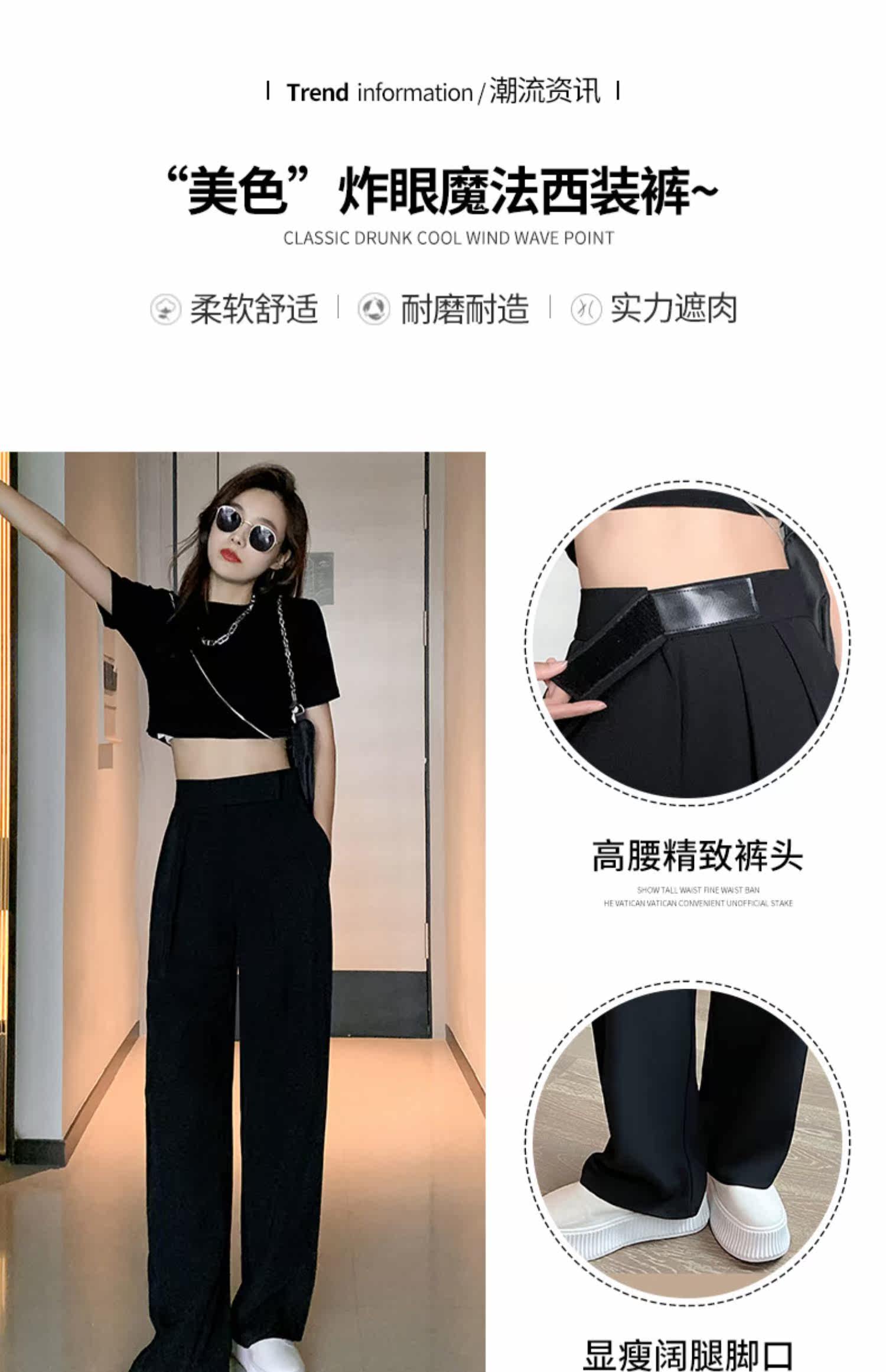 Костюм, осенние черные штаны, высокая талия, свободный прямой крой, по фигуре