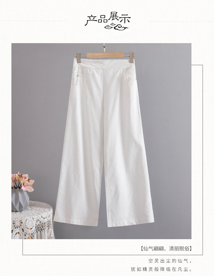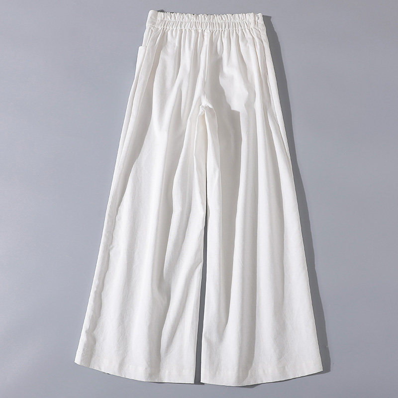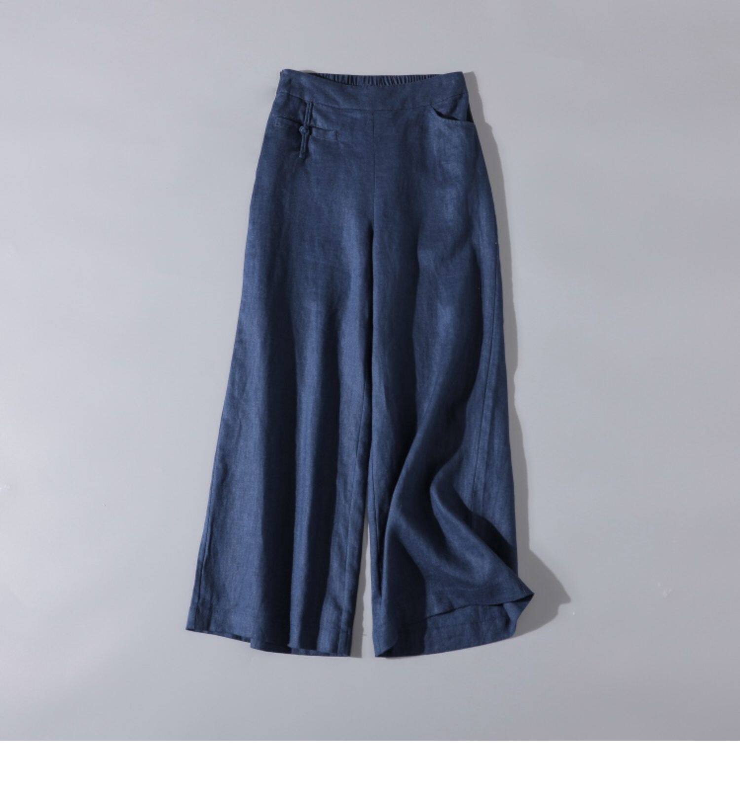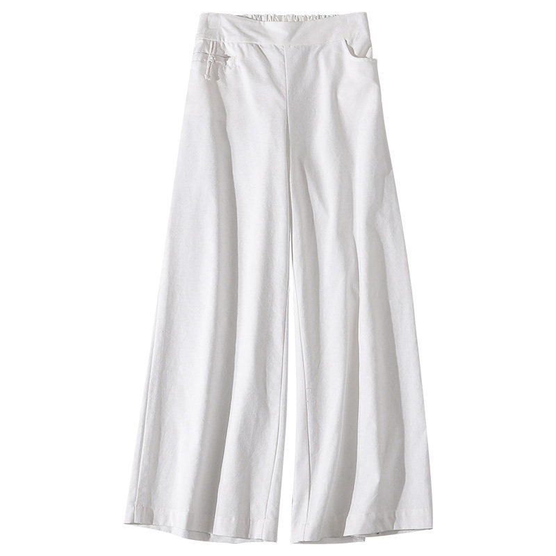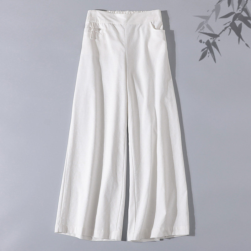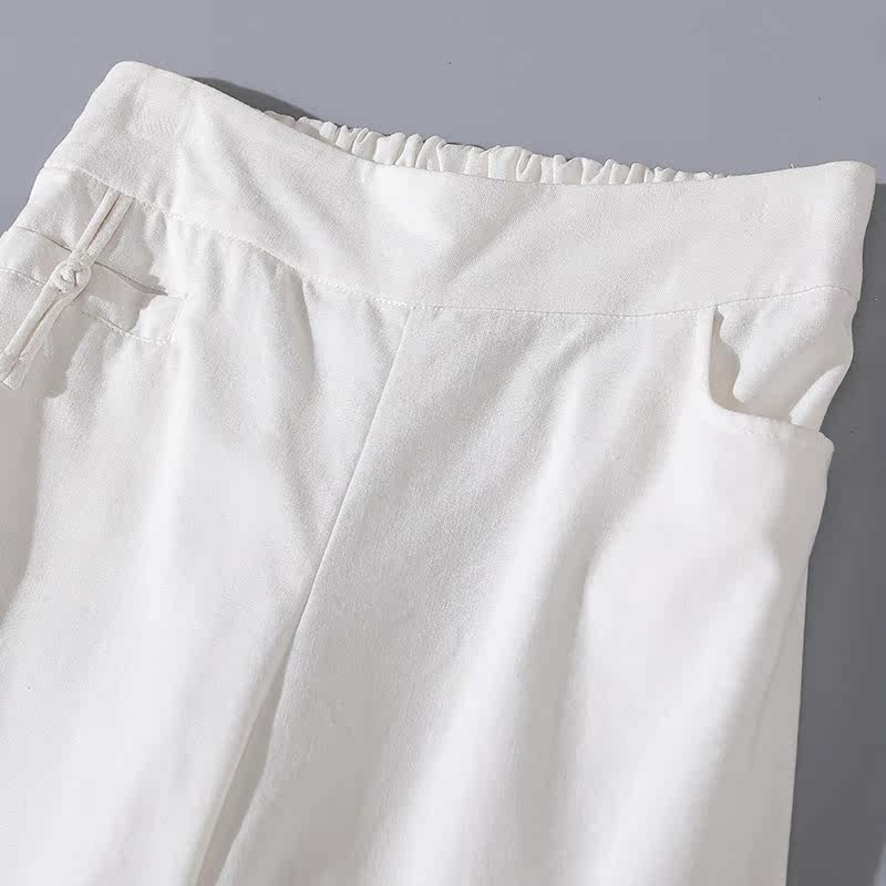 Весенние повседневные брюки для отдыха, ретро штаны, тренд сезона, из хлопка и льна, эластичная талия