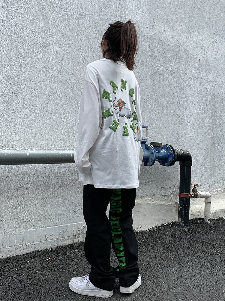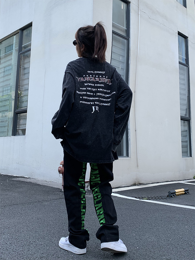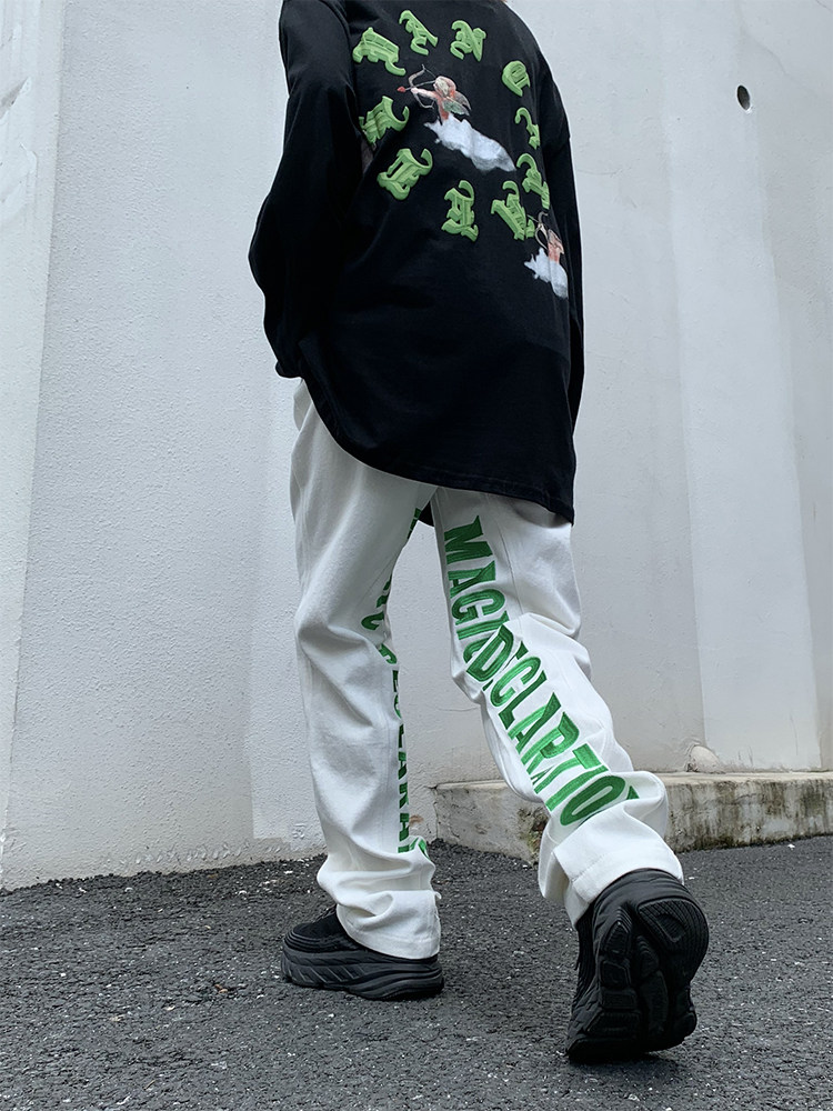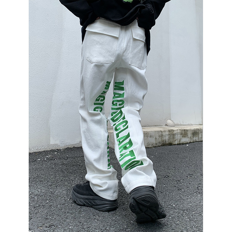 Штаны подходит для мужчин и женщин в стиле хип-хоп, джинсы для отдыха, в американском стиле, с вышивкой, европейский стиль