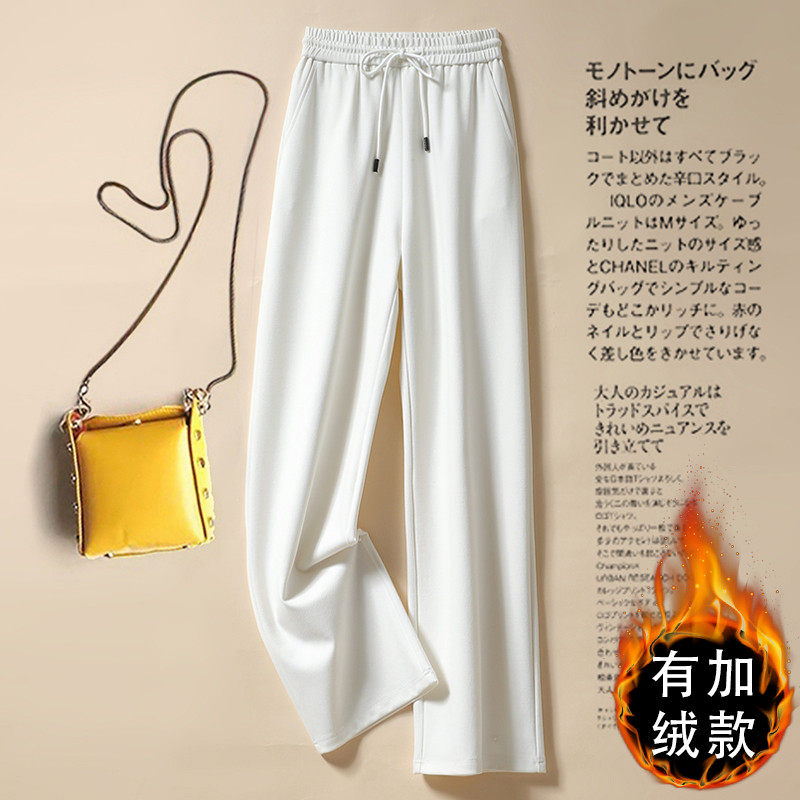 Флисовые белые осенние демисезонные штаны для отдыха, высокая талия, свободный прямой крой