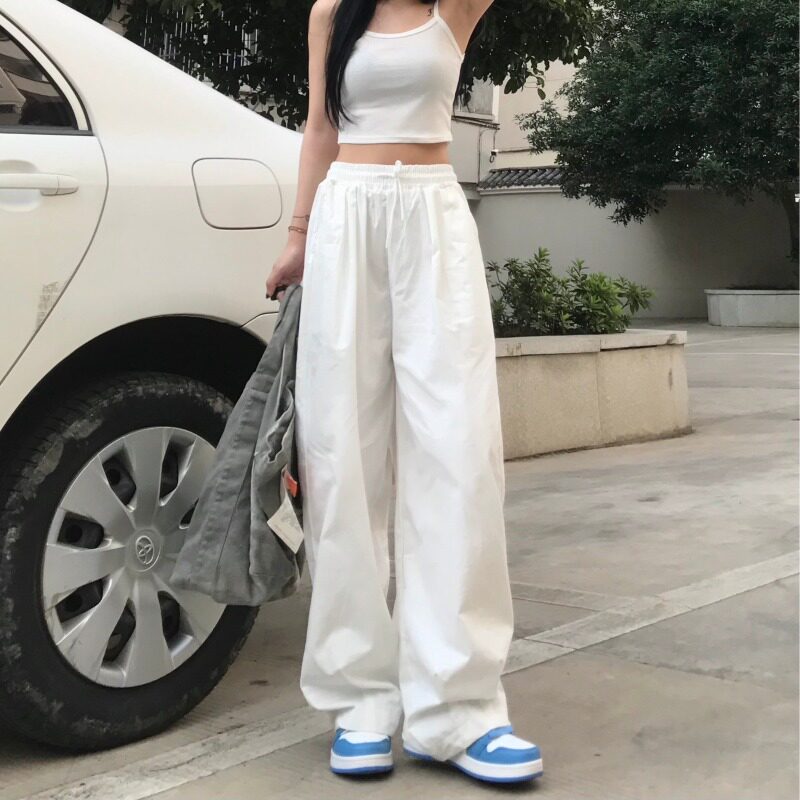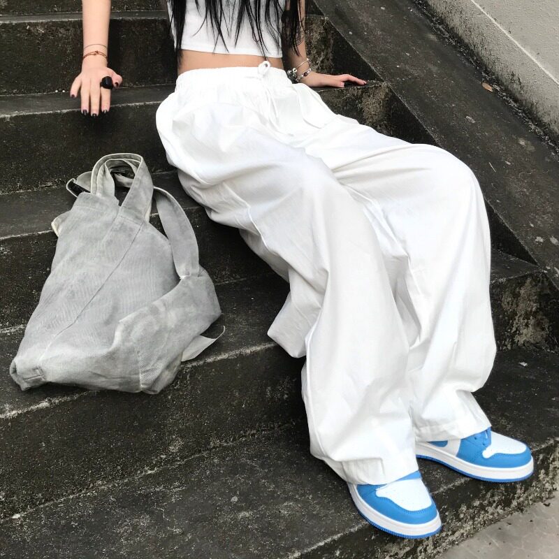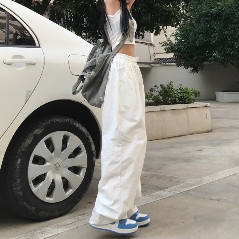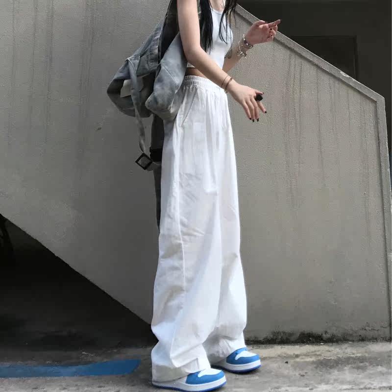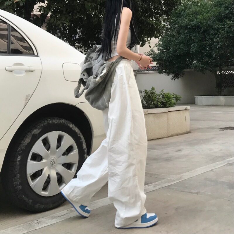 Японские белые летние тонкие штаны, эластичная талия, 2021 года, свободный прямой крой