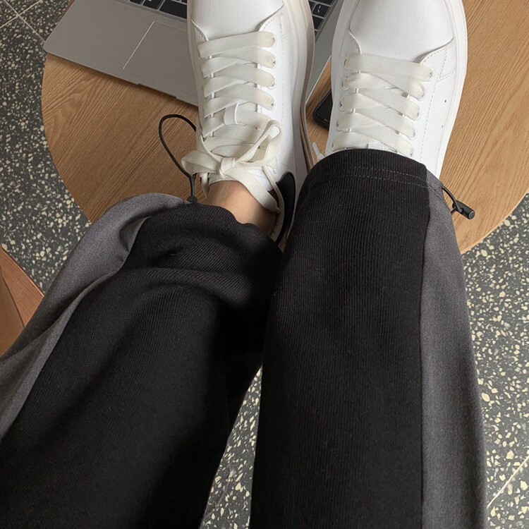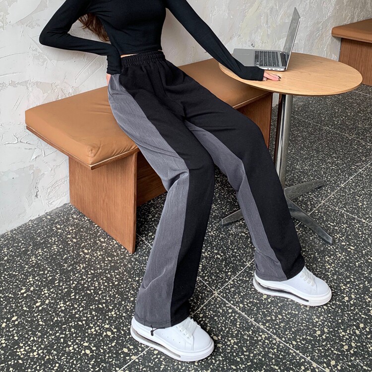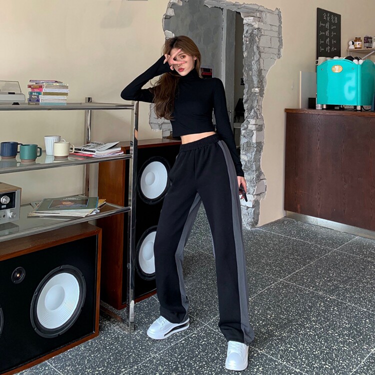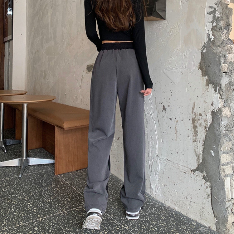 Трикотажный костюм, штаны, большой размер, высокая талия, свободный прямой крой