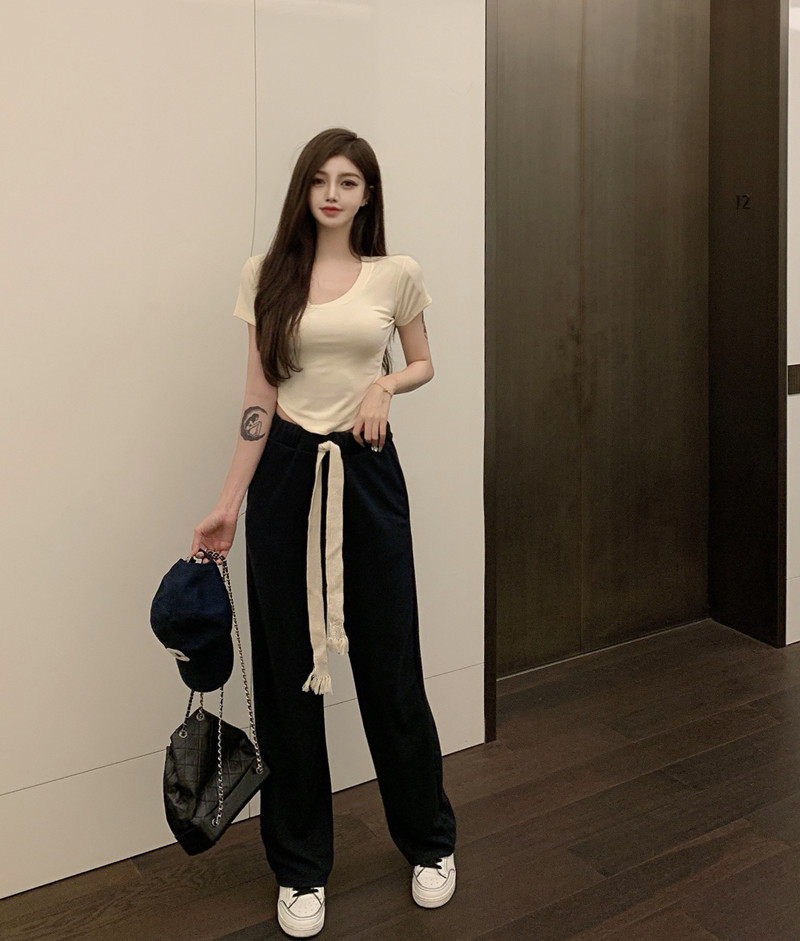 Кремовая изогнутая базовая плетеная футболка, штаны, 2021 года, на шнурках, свободный прямой крой