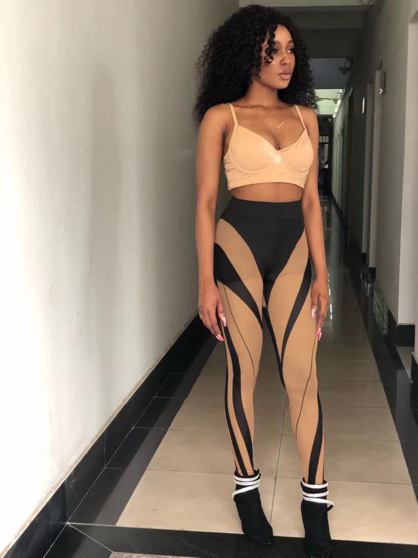 Сетчатая сетчатая тощая спортивные повседневные брюки Печать плотные спортивные повседневные штаны Женщина
