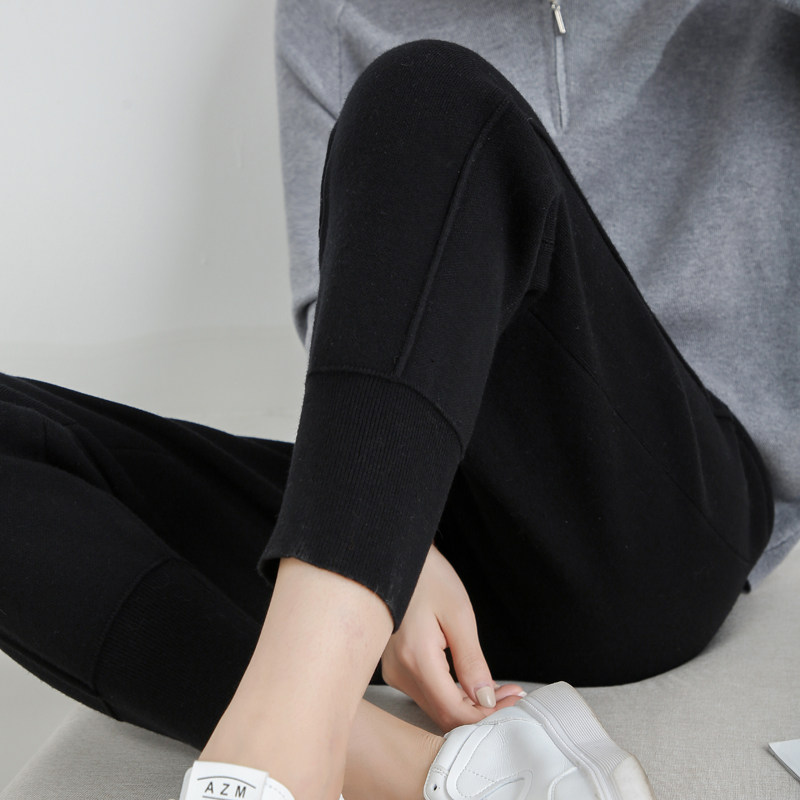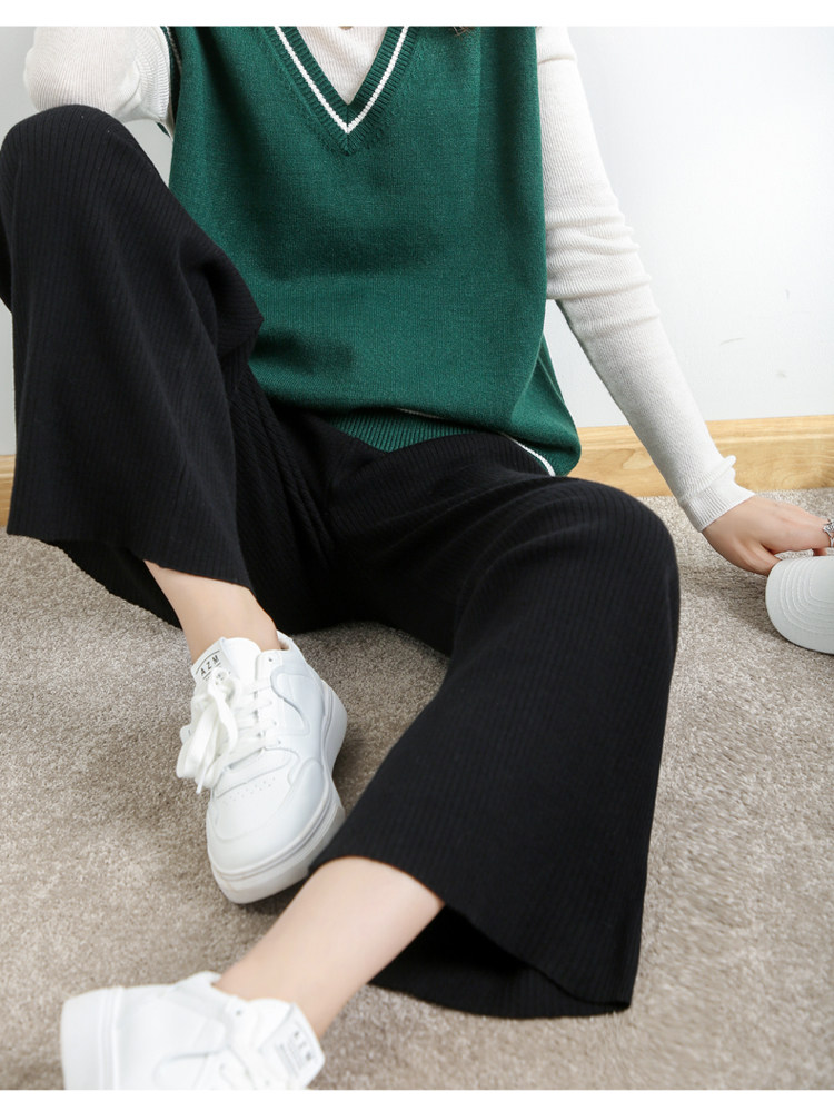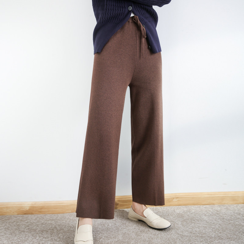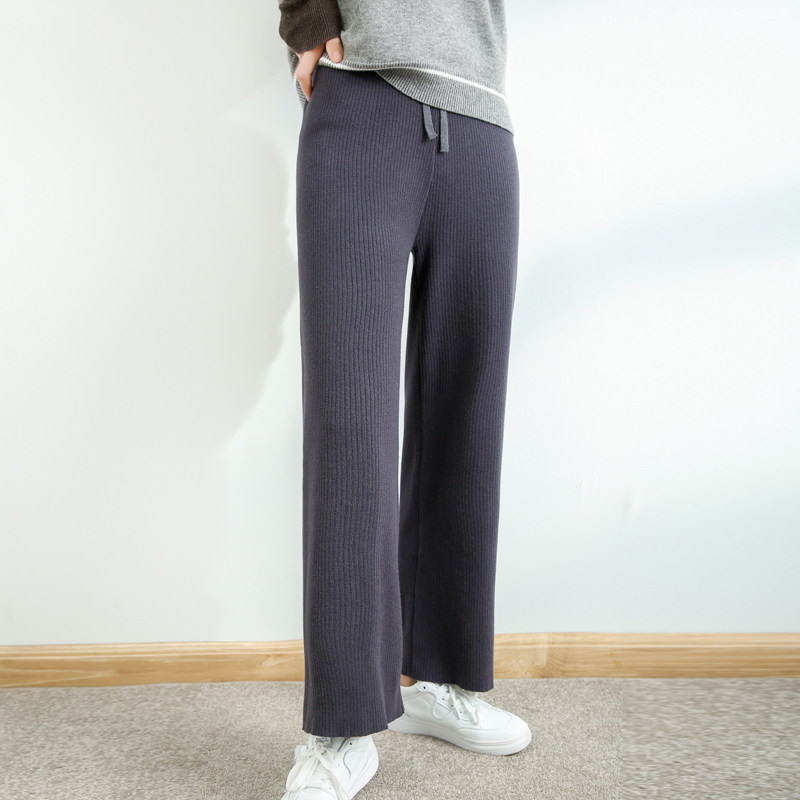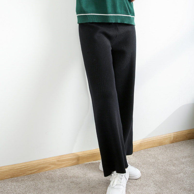 Демисезонные трикотажные эластичные базовые штаны, высокая талия, свободный прямой крой
