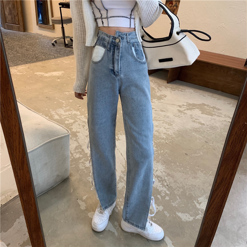 Tide, летние штаны, джинсы, коллекция 2021, высокая талия, свободный прямой крой