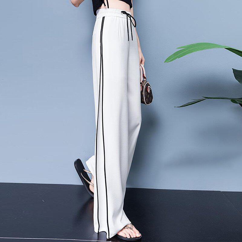 Белые летние штаны, высокая талия, свободный прямой крой