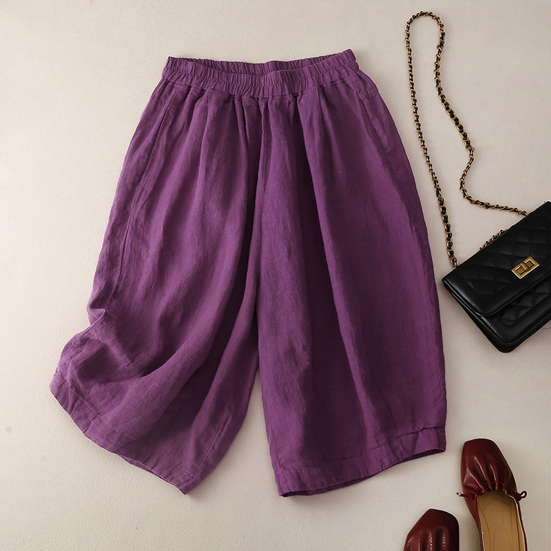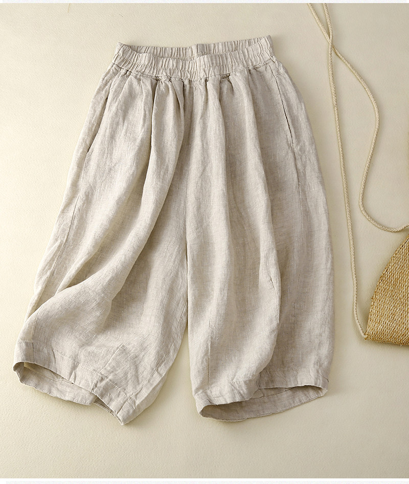 Шорты, штаны для отдыха, из хлопка и льна, свободный крой, размер