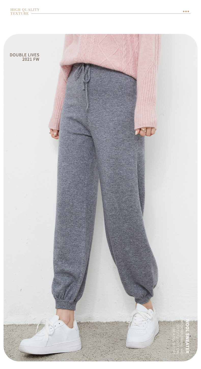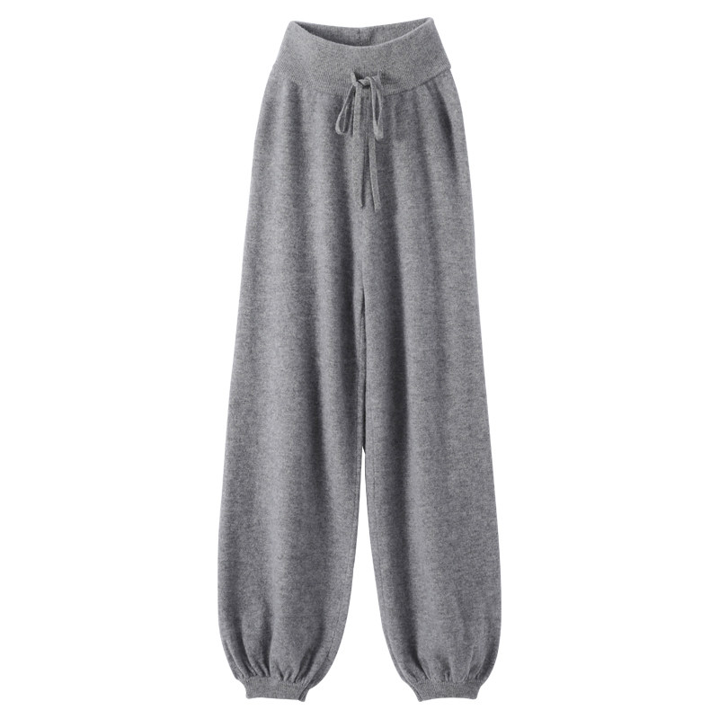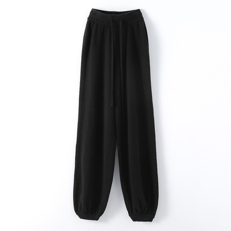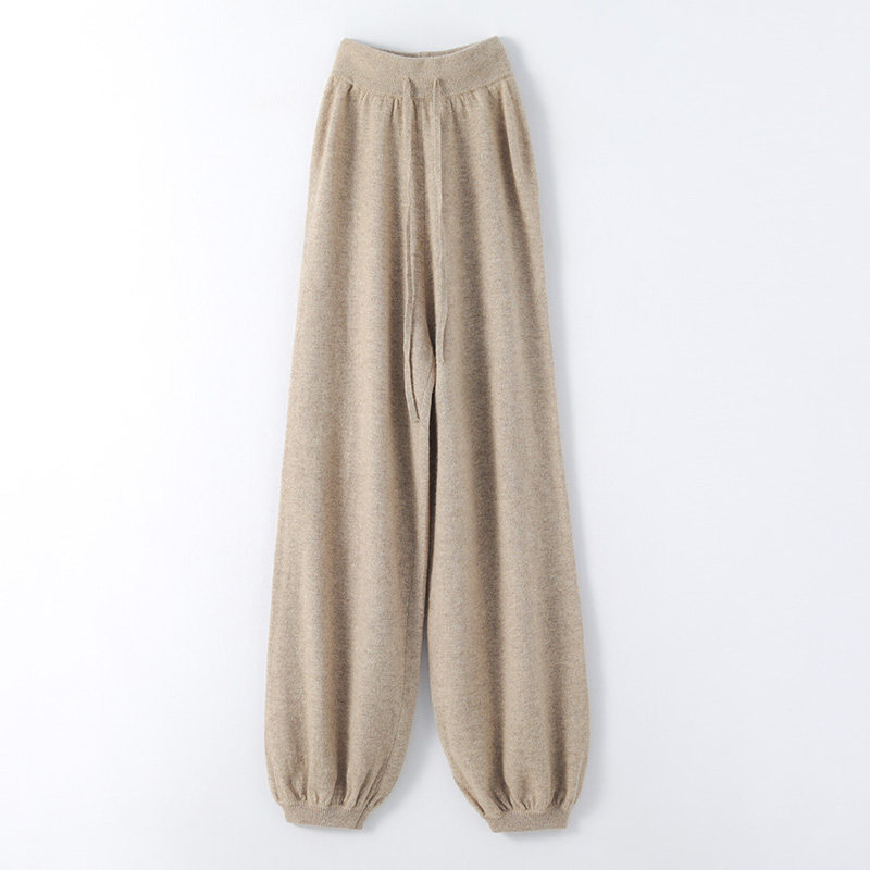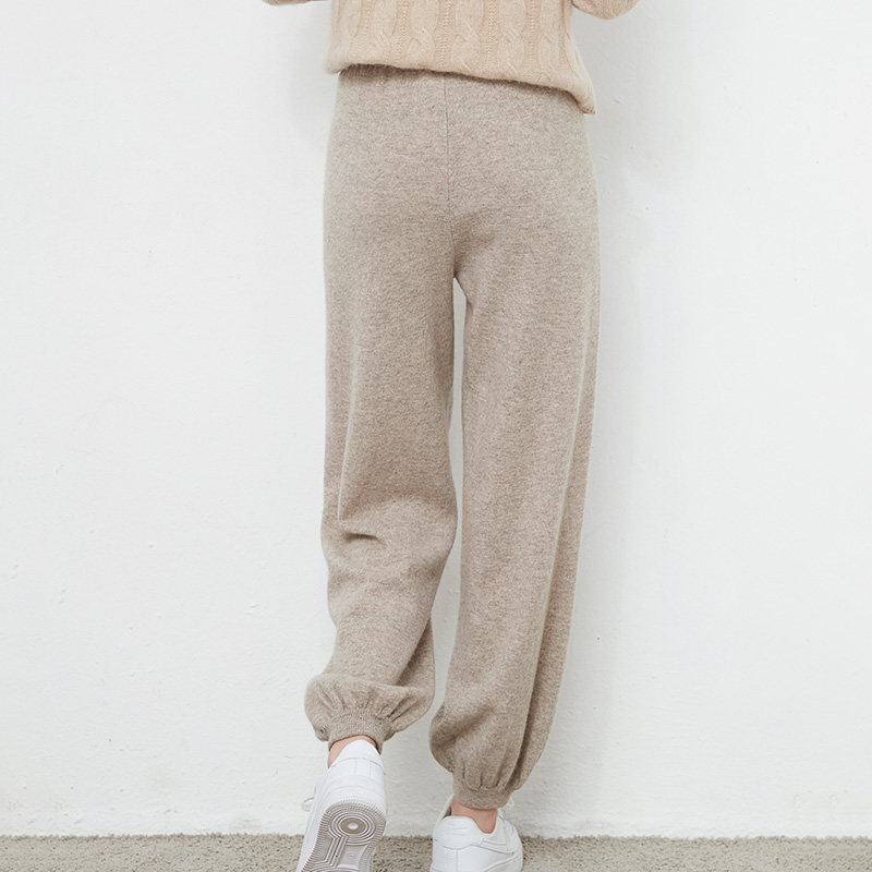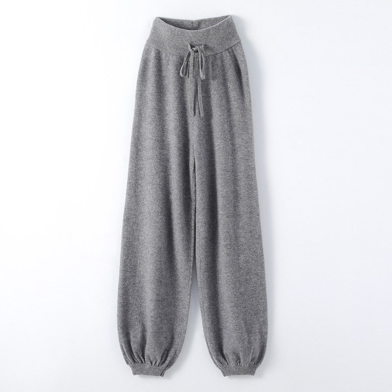 Осенний демисезонный фонарь, штаны, кашемировые шерстяные трикотажные повседневные брюки, новая коллекция, высокая талия