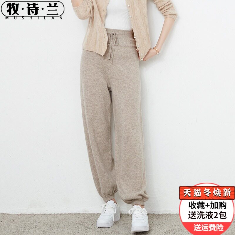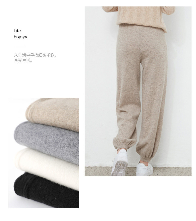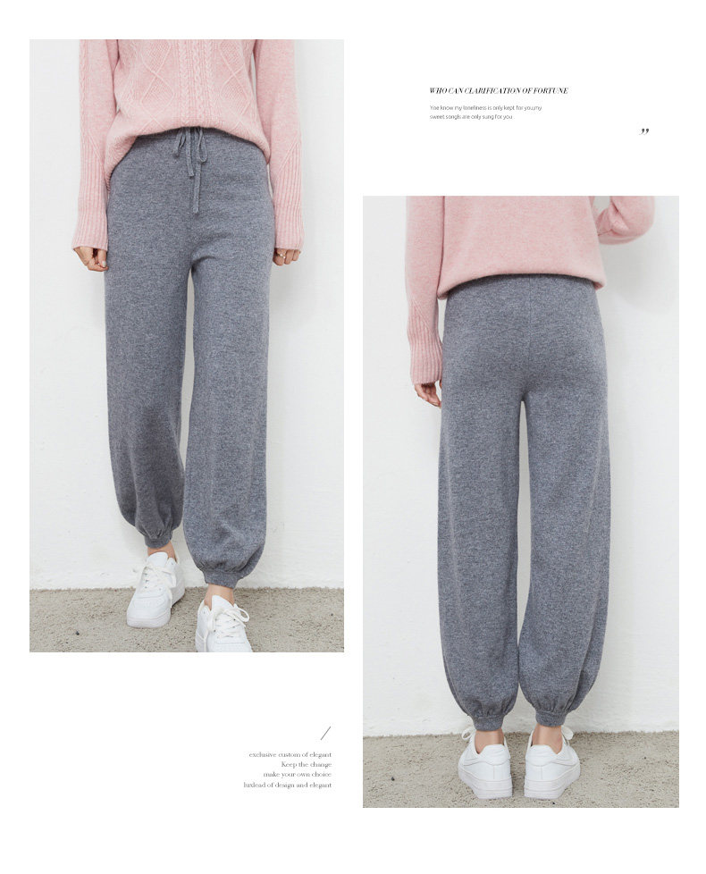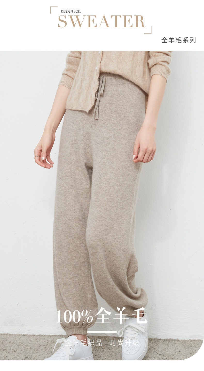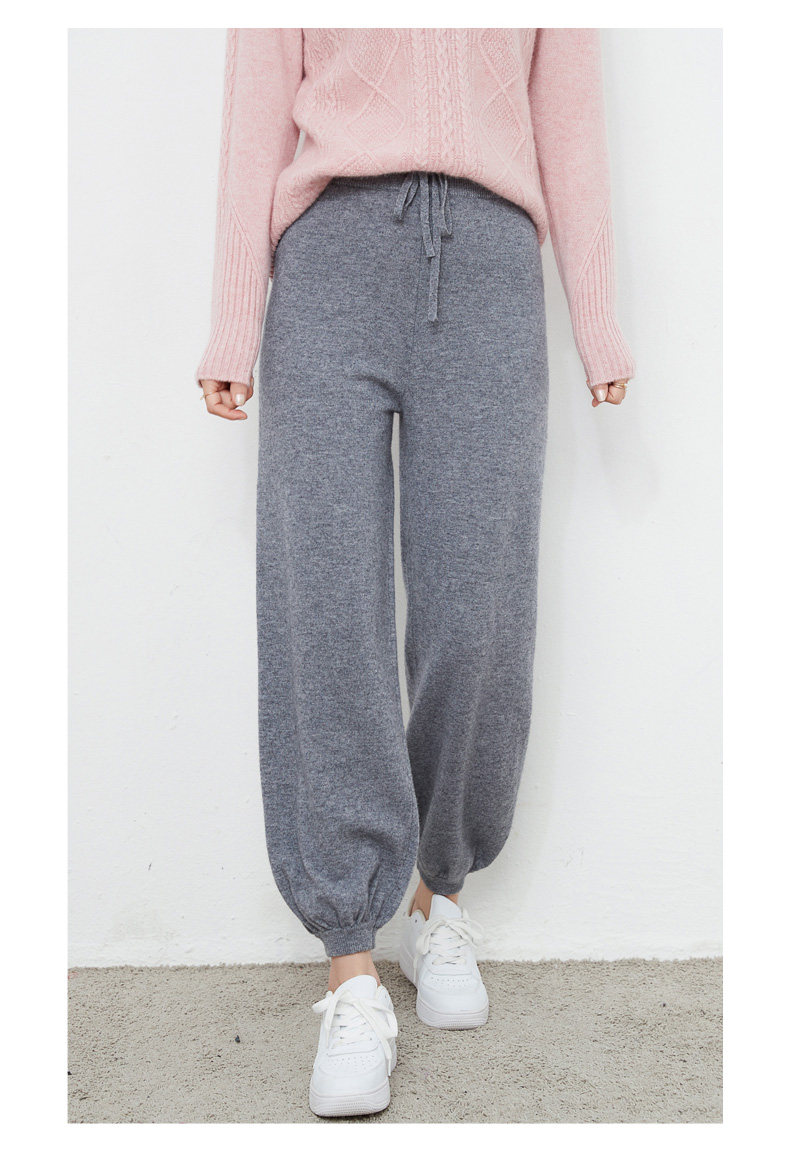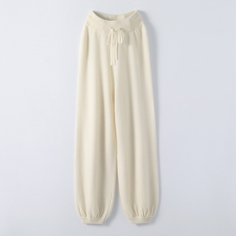 Осенний демисезонный фонарь, штаны, кашемировые шерстяные трикотажные повседневные брюки, новая коллекция, высокая талия