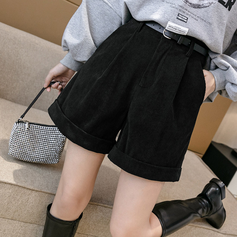 Вельветовые демисезонные шорты, леггинсы, штаны, коллекция 2021, высокая талия, свободный крой, А-силуэт