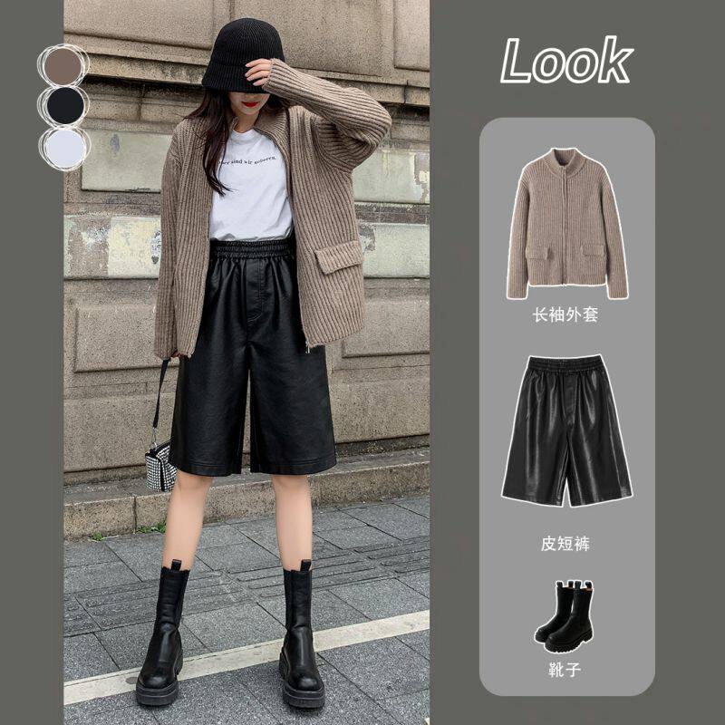Штаны, демисезонные шорты, приталенные леггинсы, большой размер, свободный прямой крой, высокая талия